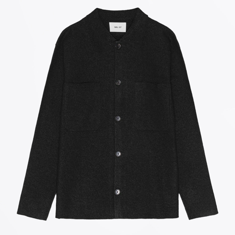 Founded by two friends in 2007, NN07 strives to change the modern to casual wardrobe. Based in Copenhagen however the brand strives to not to focus on nationalities rather personalities when it comes to their unique garments. Inspired by dedicated people and communities, the brand creates products with attention to the demands of today. This black overshirt is crafted with soft boiled wool and features a collared neckline, button up fastening and two patch pockets. Wear this overshirt with a pair of designer jeans and designer trainers.