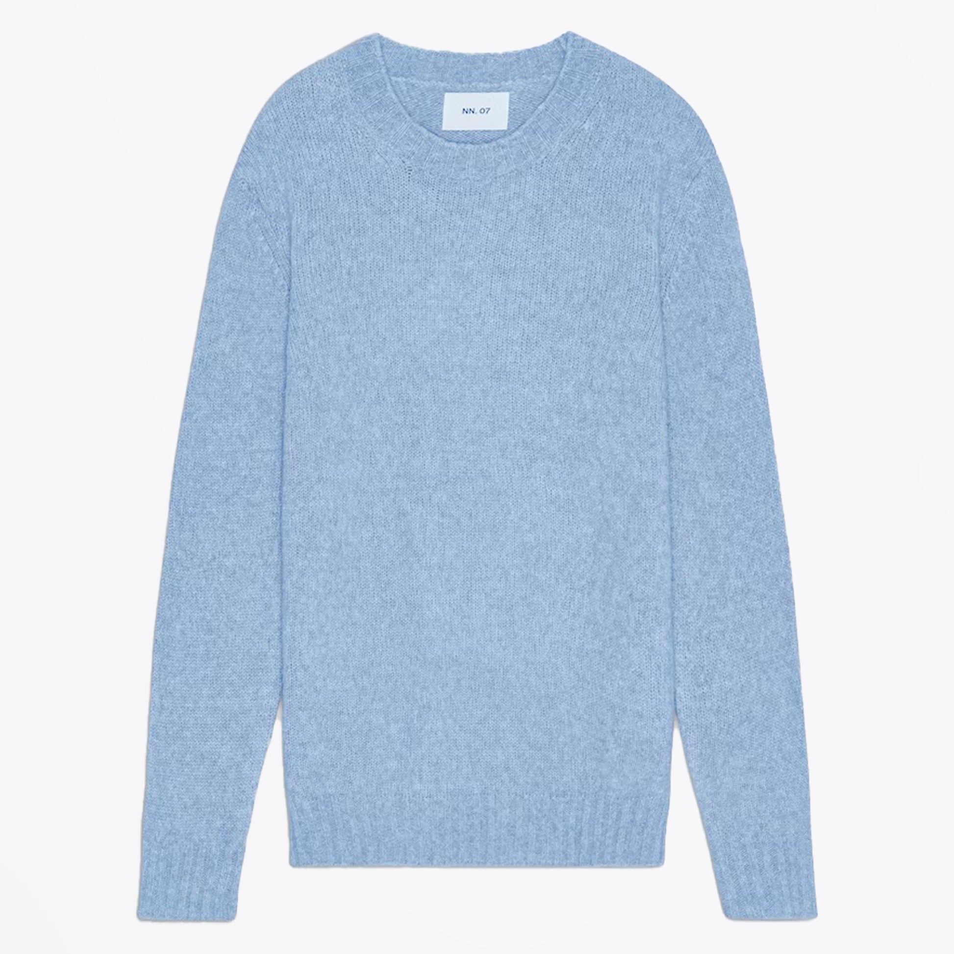 Founded by two friends in 2007, NN07 strives to change the modern to casual wardrobe. Based in Copenhagen however the brand strives to not to focus on nationalities rather personalities when it comes to their unique garments. Inspired by dedicated people and communities, the brand creates products with attention to the demands of today. This Lee sweatshirt features a crew neckline, ribbed hem and cuffs, crafted in a blue fluffy textured yarn. Wear this with some NN.07 trousers and Hoff sneakers.