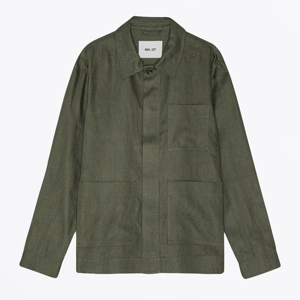 Founded by two friends in 2007, NN07 strives to change the modern to casual wardrobe. Based in Copenhagen however the brand strives to not to focus on nationalities rather personalities when it comes to their unique garments. Inspired by dedicated people and communities, the brand creates products with attention to the demands of today. This croc green Olav linen overshirt features a collared neckline, button up fastening, three patch pockets and buttoned cuffs. Wear this overshirt with a pair of universal works trousers and some Hoff sneakers.
