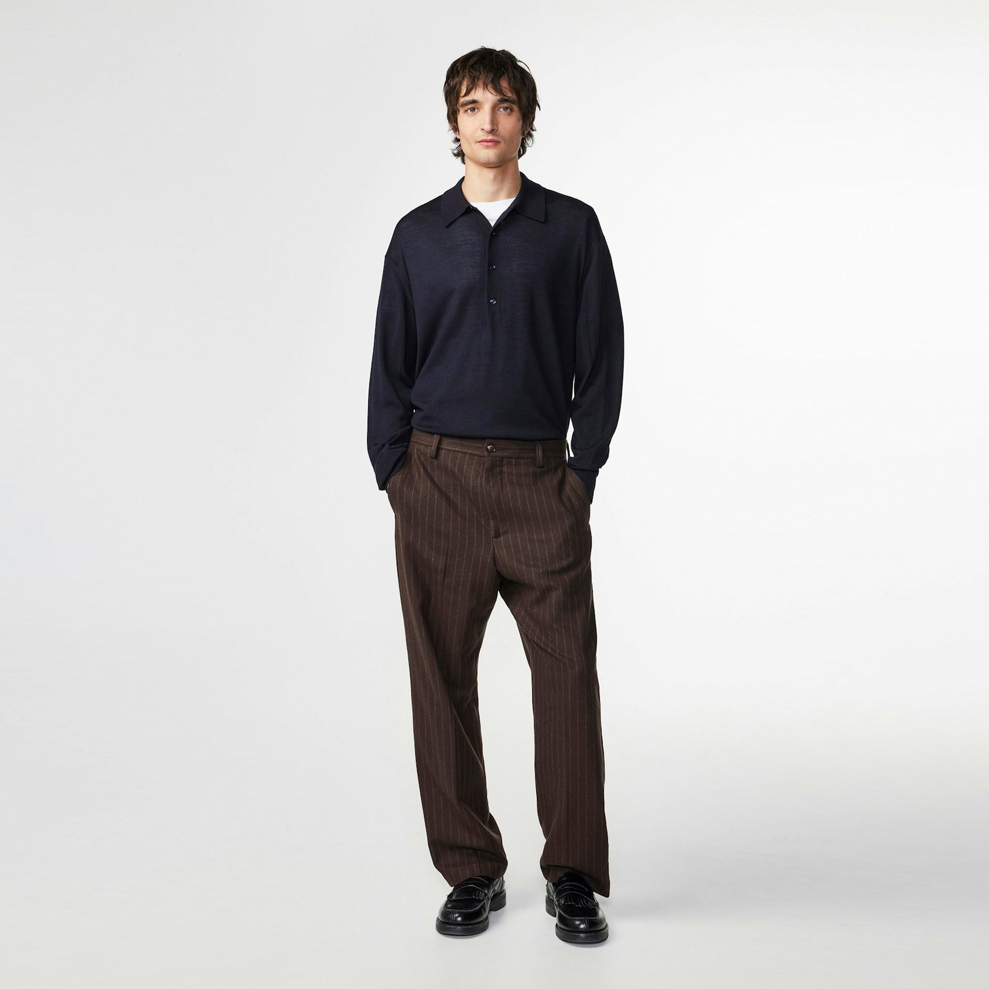 Founded by two friends in 2007, NN07 strives to change the modern to casual wardrobe. Based in Copenhagen however the brand strives to not to focus on nationalities rather personalities when it comes to their unique garments. Inspired by dedicated people and communities, the brand creates products with attention to the demands of today. This navy Raymond polo crafted in an acrylic and soft wool blend and features a collared neckline, quarter button fastening, ribbed cuffs and hem. Wear this knitted polo with some with some MMX trousers and Victoria sneakers.