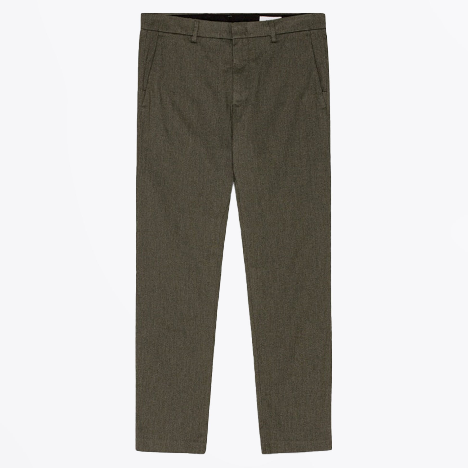 Founded by two friends in 2007, NN07 strives to change the modern to casual wardrobe. Based in Copenhagen however the brand strives to not to focus on nationalities rather personalities when it comes to their unique garments. Inspired by dedicated people and communities, the brand creates products with attention to the demands of today. These Theo trousers feature a melange twill weave belt loops, cobrax hook and eye closure and has two side pockets and two welt pockets. Wear these trousers with a Thomas Maine pole and some Paul Smith sneakers.