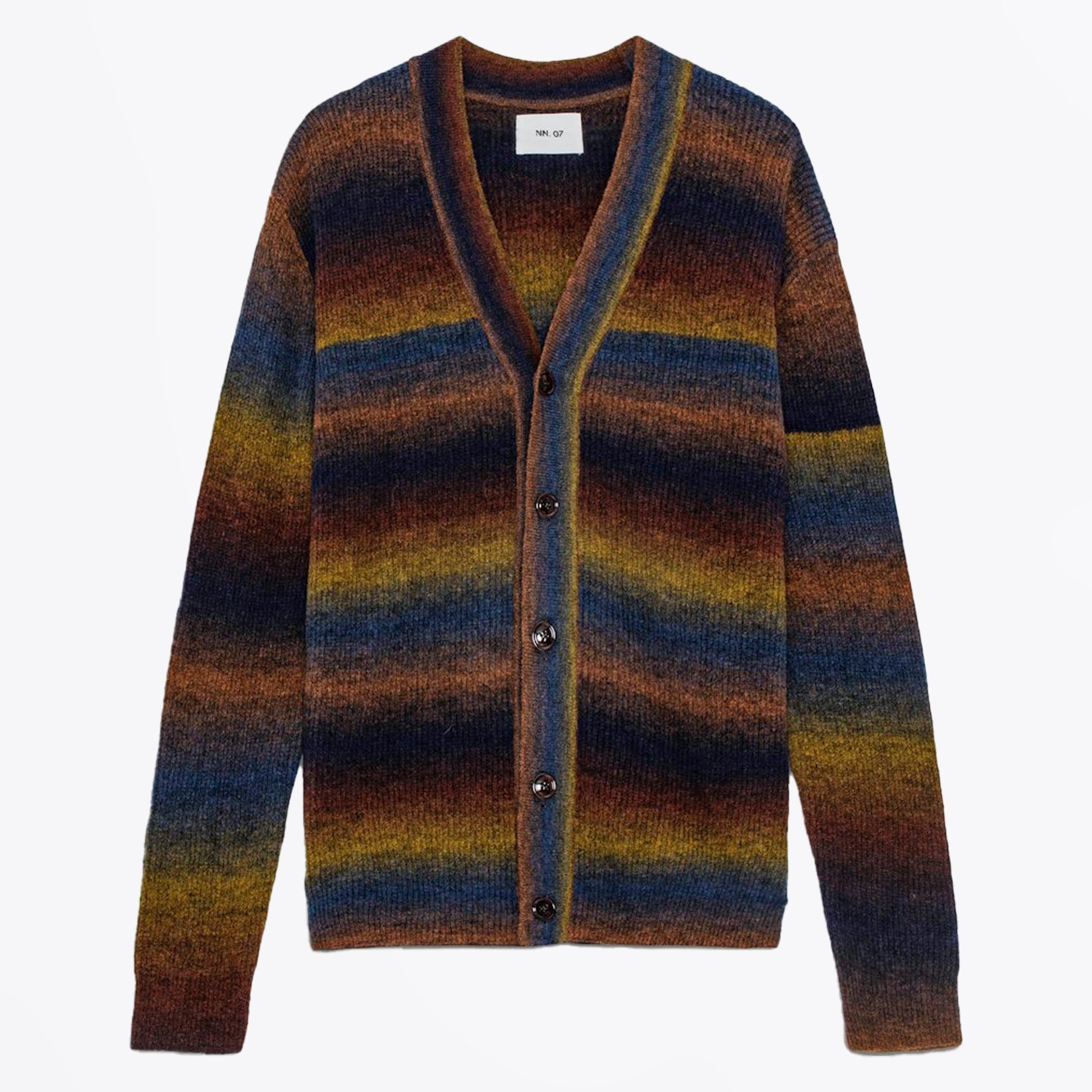 Founded by two friends in 2007, NN07 strives to change the modern to casual wardrobe. Based in Copenhagen however the brand strives to not to focus on nationalities rather personalities when it comes to their unique garments. Inspired by dedicated people and communities, the brand creates products with attention to the demands of today. This jumper features an autumn-coloured stripe pattern with a soft ribbed design throughout. It also features a V-neckline, chunky button up fastening and long sleeves. Wear this with some NN.07 trousers and Hoff sneakers.