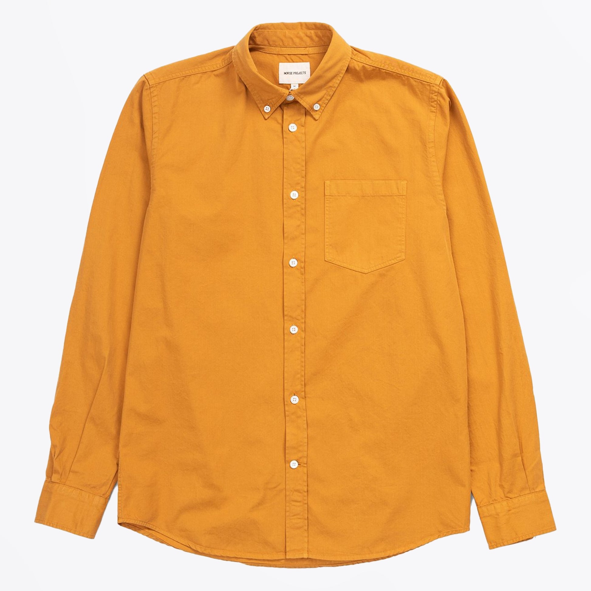 Norse Projects hails from one of the most exciting fashion influential and contemporary cities at the moment, Copenhagen. They fuse iconic Scandinavian style with their unique influences, creating a brand inspired by nature and modern street style. Enhance your wardrobe with a pop of colour with this Norse Project option. This yellow shirt is crafted in a cotton material and features a breast pocket, with a button-down fastening, a buttoned collar neckline, and buttoned cuffs. Wear this shirt with a pair of Nudie Jeans and some Paul Smith trainers.