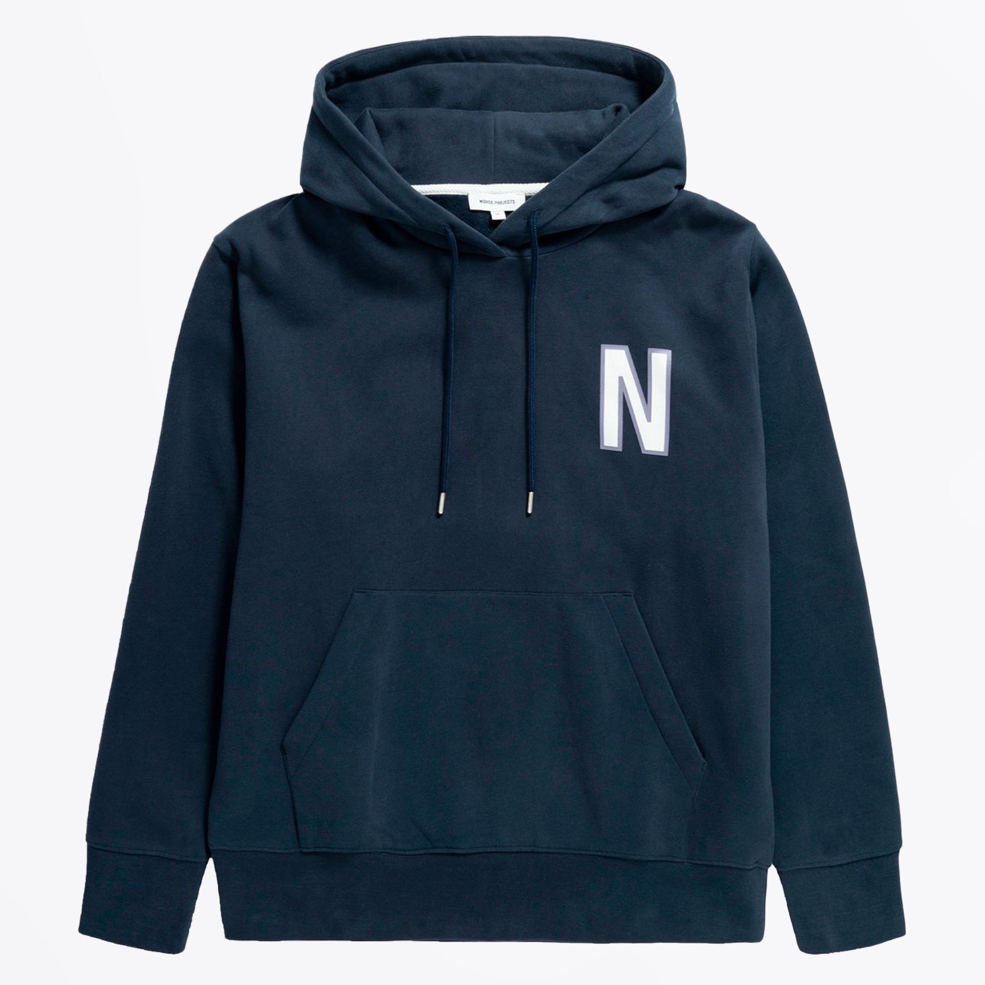 Norse Projects hails from one of the most exciting fashion influential and contemporary cities at the moment, Copenhagen. They fuse iconic Scandinavian style with their unique influences, creating a brand inspired by nature and modern street style. Enhance your wardrobe with a pop of colour with this Norse Project option. This navy hoodie features a double layer drawstring, metal aglets, kangaroo pocket, ribbed cuffs and hem. Wear this jacket with a pair of Nudie Jeans and some Paul Smith trainers.