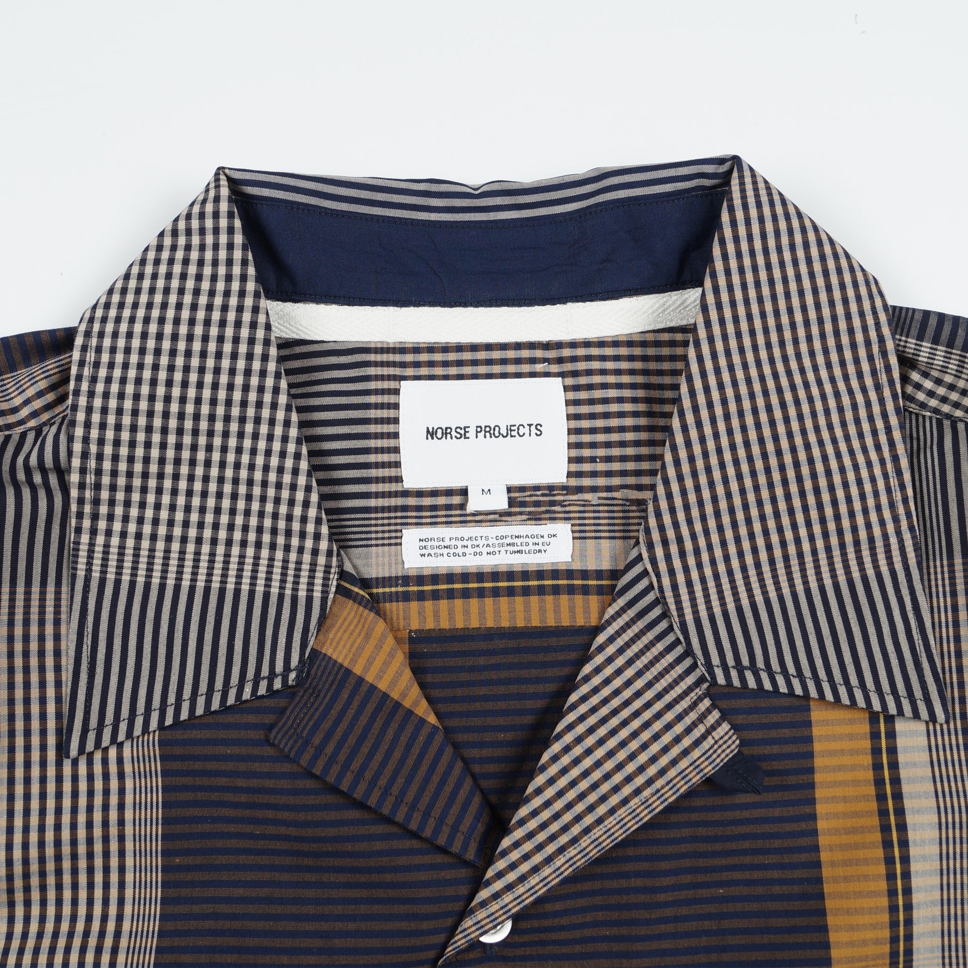 Norse Projects hails from one of the most exciting fashion influential and contemporary cities at the moment, Copenhagen. They fuse iconic Scandinavian style with their unique influences, creating a brand inspired by nature and modern street style. Enhance your new season wardrobe touch with contemporary style with this shirt. Featuring a checked design in navy, ochre and white shades, this shirt has short sleeves, a button-down fastening, a collared neckline, and a breast pocket. Wear this shirt with a pair of designer jeans and some Paul Smith trainers.