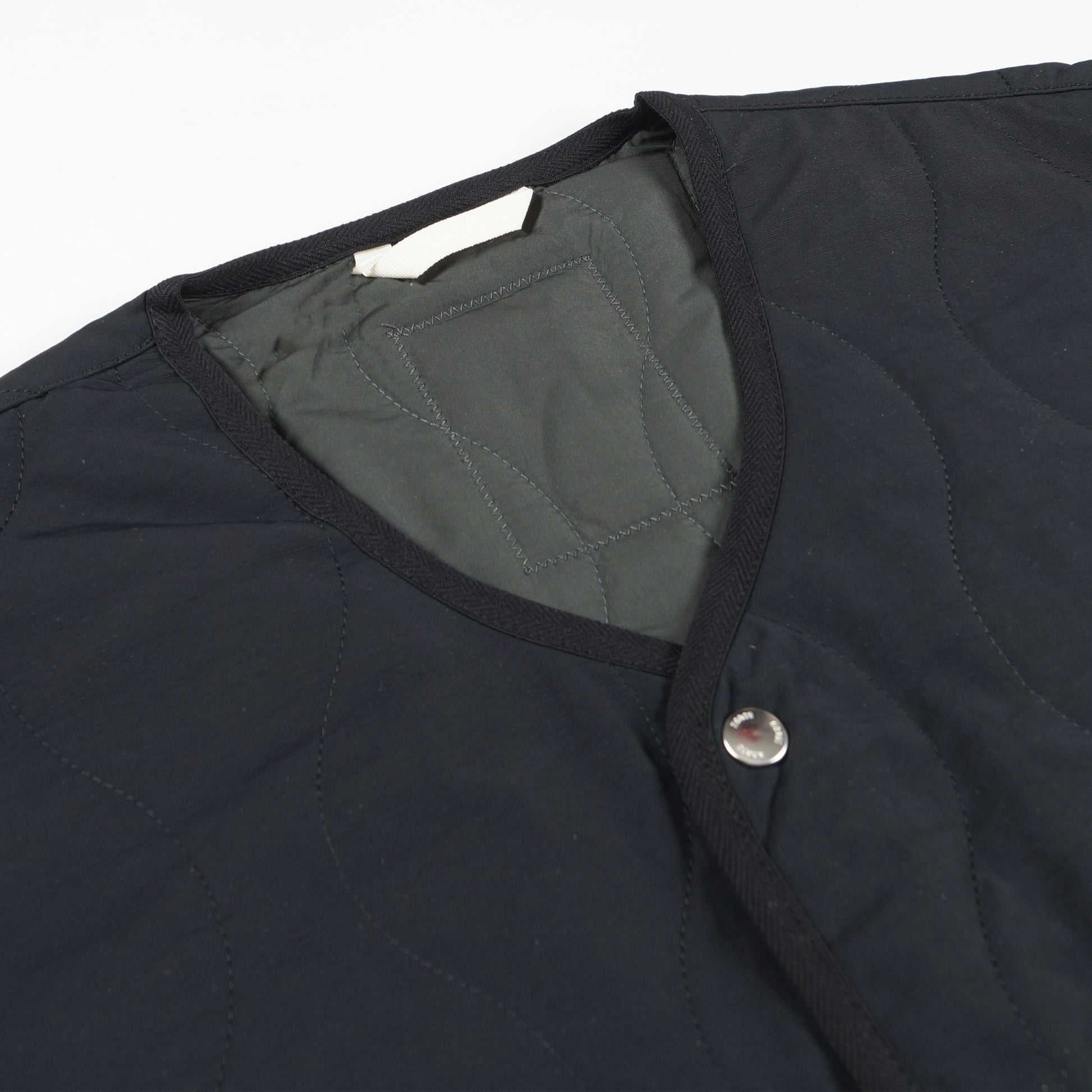Norse Projects hails from one of the most exciting fashion influential and contemporary cities at the moment, Copenhagen. They fuse iconic Scandinavian style with their unique influences, creating a brand inspired by nature and modern street style. Enhance your wardrobe with a pop of colour with this Norse Project option. This navy vest coat features a rounded neckline, button up fastening, two side pockets. Wear this vest coat with a pair of Nudie Jeans and some Paul Smith trainers.