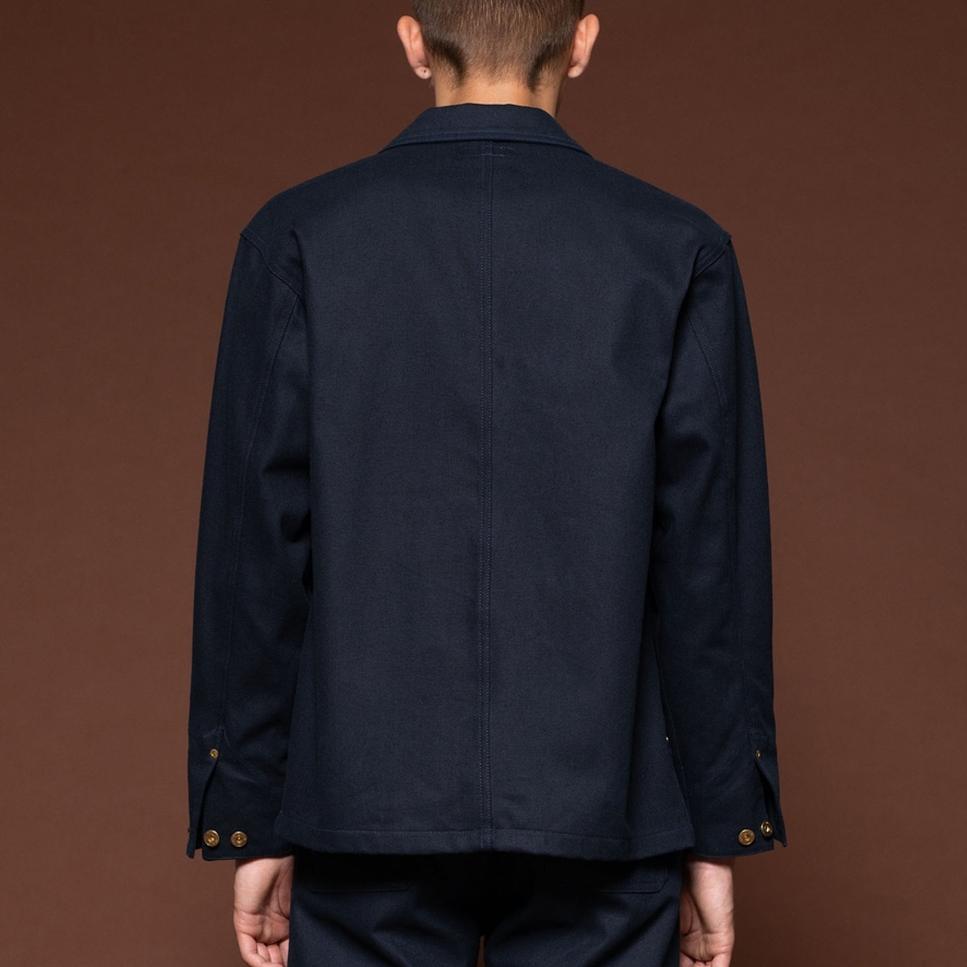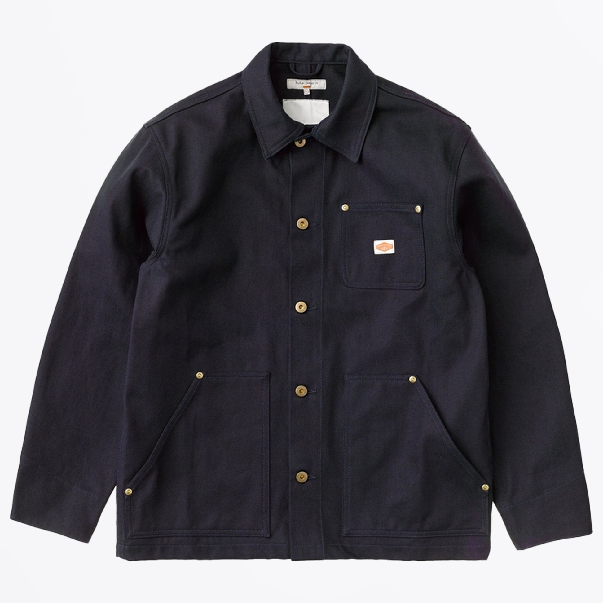 Based in Gothenburg, Nudie Jeans has specialised in premium denim since it’s foundation in 2001. The brand has an upbeat, youthful edge, underscored by its stylish designs. Their jeans are intended to be worn daily so that the denim will build up its own characteristics based on your lifestyle. This Nudie Jeans version of a chore jacket is crafted in a navy twill material, and features three front patch pockets, gold-toned buttons, and rivets. Wear this jacket over a designer tee, with designer trainers.