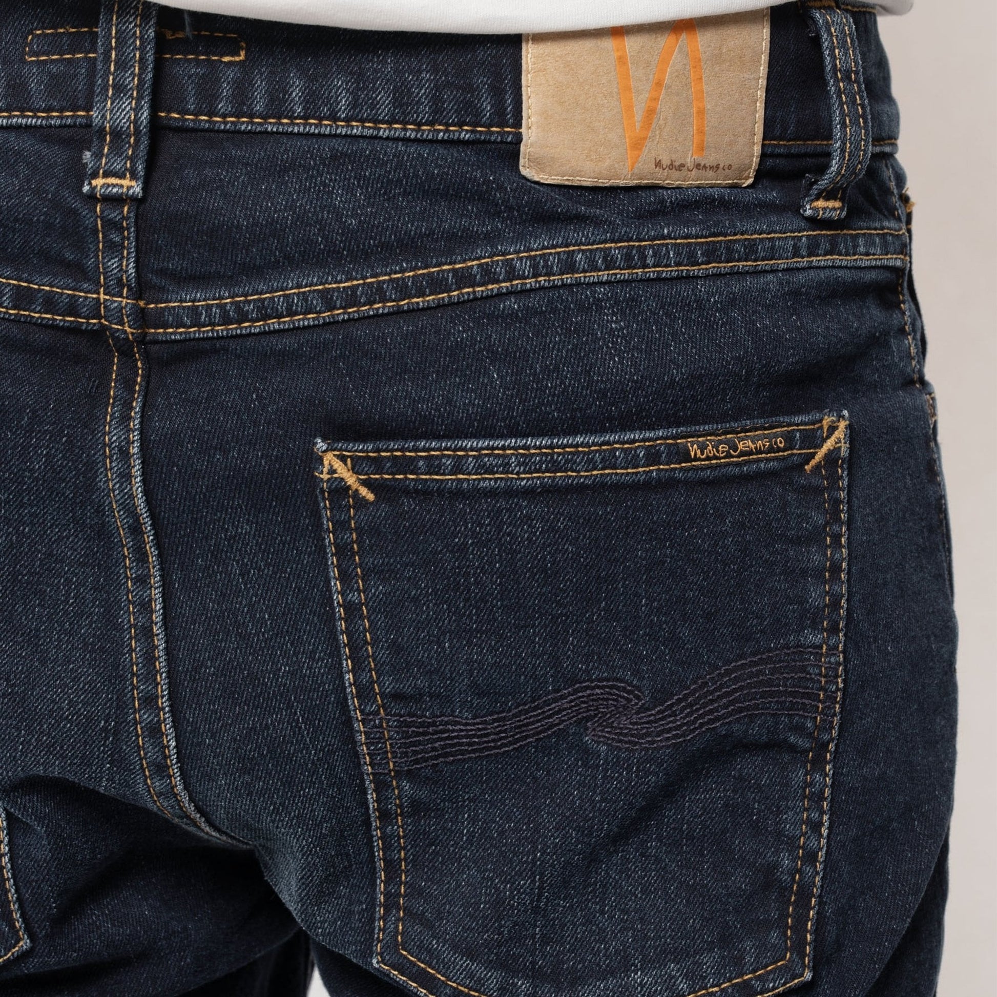 • Navy back pocket embroidery