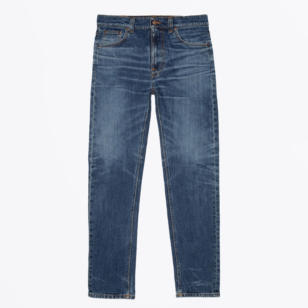 Based in Gothenburg, Nudie Jeans has specialised in premium denim since it’s foundation in 2001. The brand has an upbeat, youthful edge, underscored by its stylish designs. Their jeans are intended to be worn daily so that the denim will build up its own characteristics based on your lifestyle. These jeans are crafted in a slim fit, with a comfort stretch denim, in a mid blue colour. These jeans have orange stitching, with dark copper coloured hardware, button fastening, 5-pocket style and a Nudie logo patch. Wear these jeans with any of your weekend outfits and pair with some designer trainers