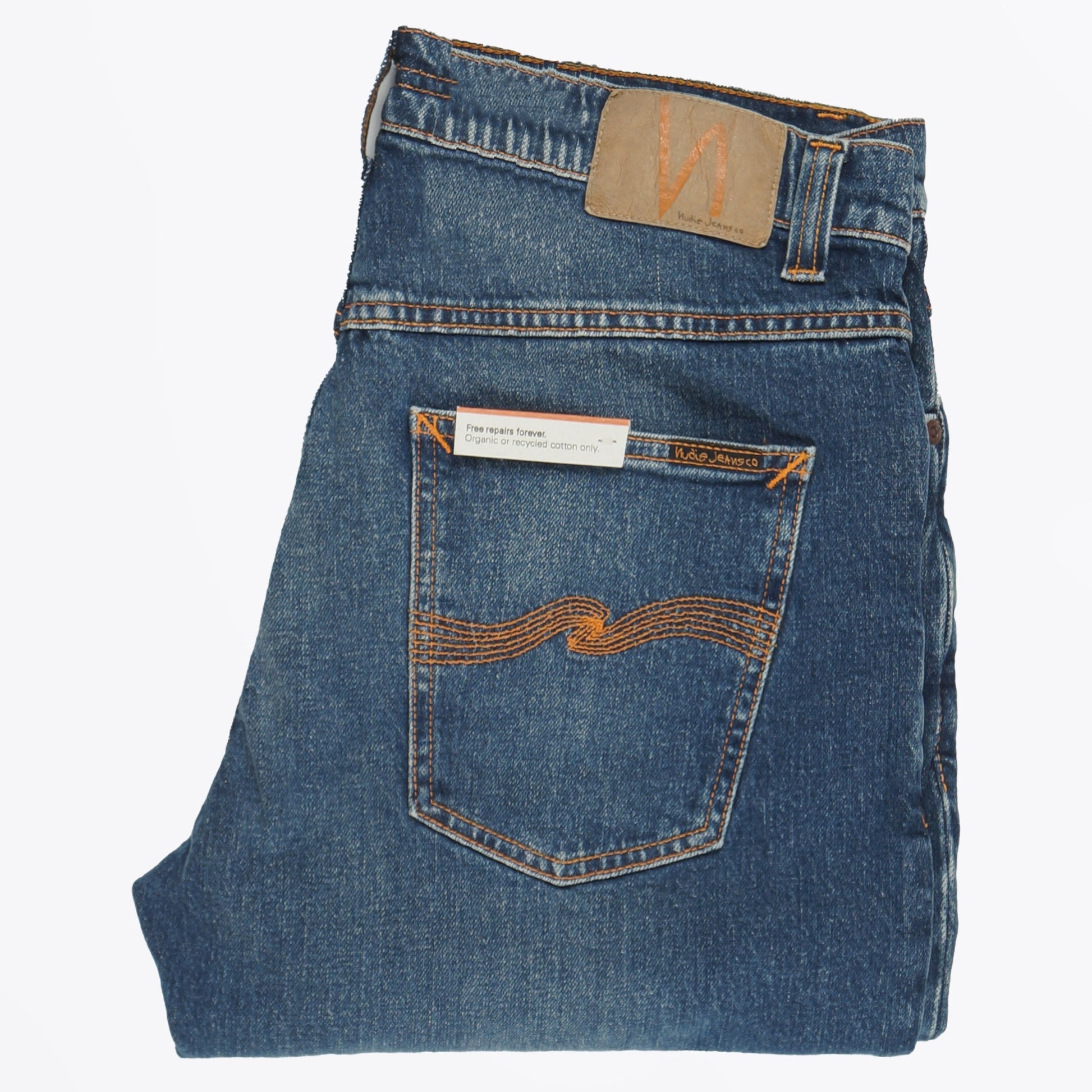 Based in Gothenburg, Nudie Jeans has specialised in premium denim since it’s foundation in 2001. The brand has an upbeat, youthful edge, underscored by its stylish designs. Their jeans are intended to be worn daily so that the denim will build up its own characteristics based on your lifestyle. These jeans are crafted in a slim fit, with a comfort stretch denim, in a blue colour. These jeans have orange stitching, with dark copper coloured hardware, button fastening, 5-pocket style and a Nudie logo patch. Wear these jeans with any of your weekend outfits and pair with some designer trainers