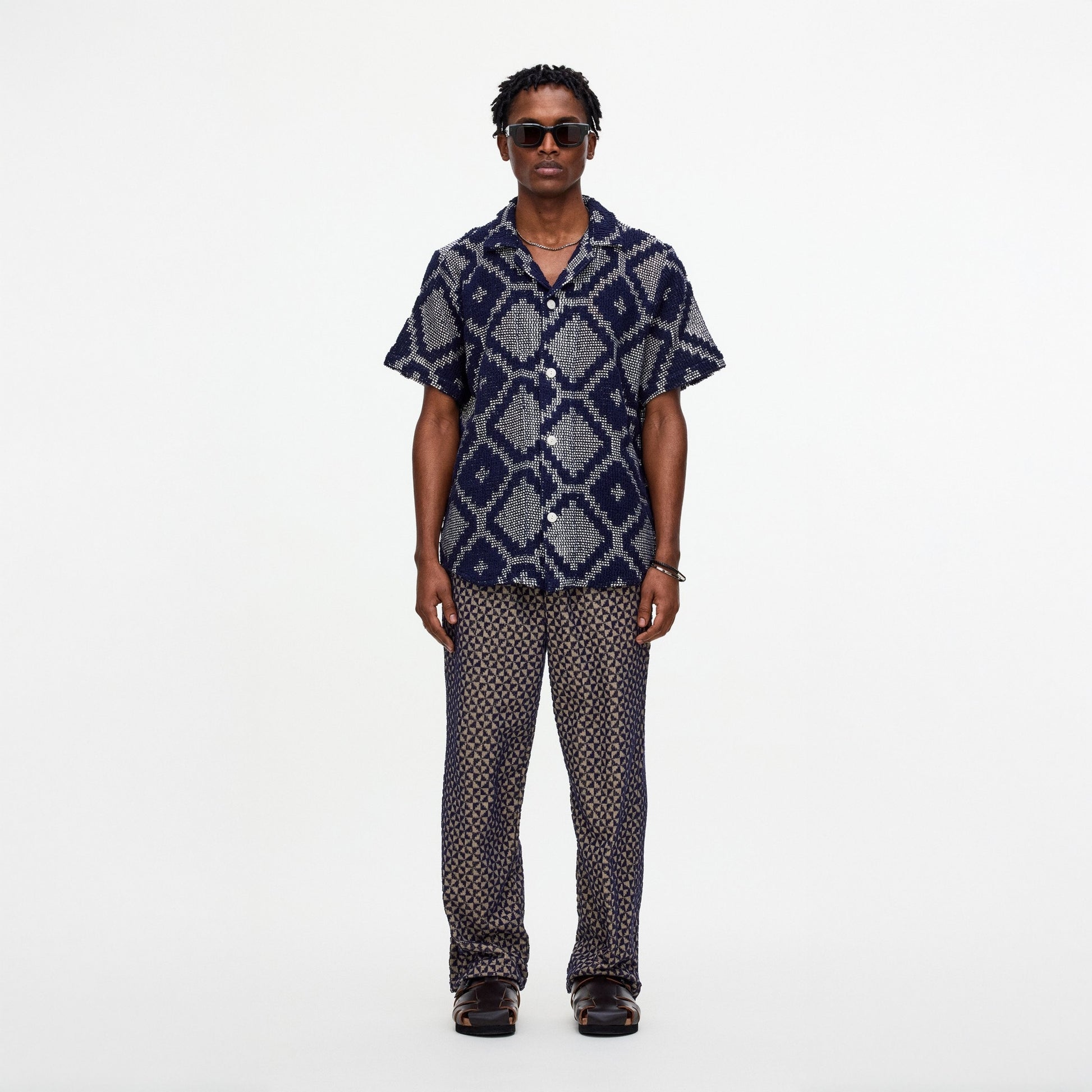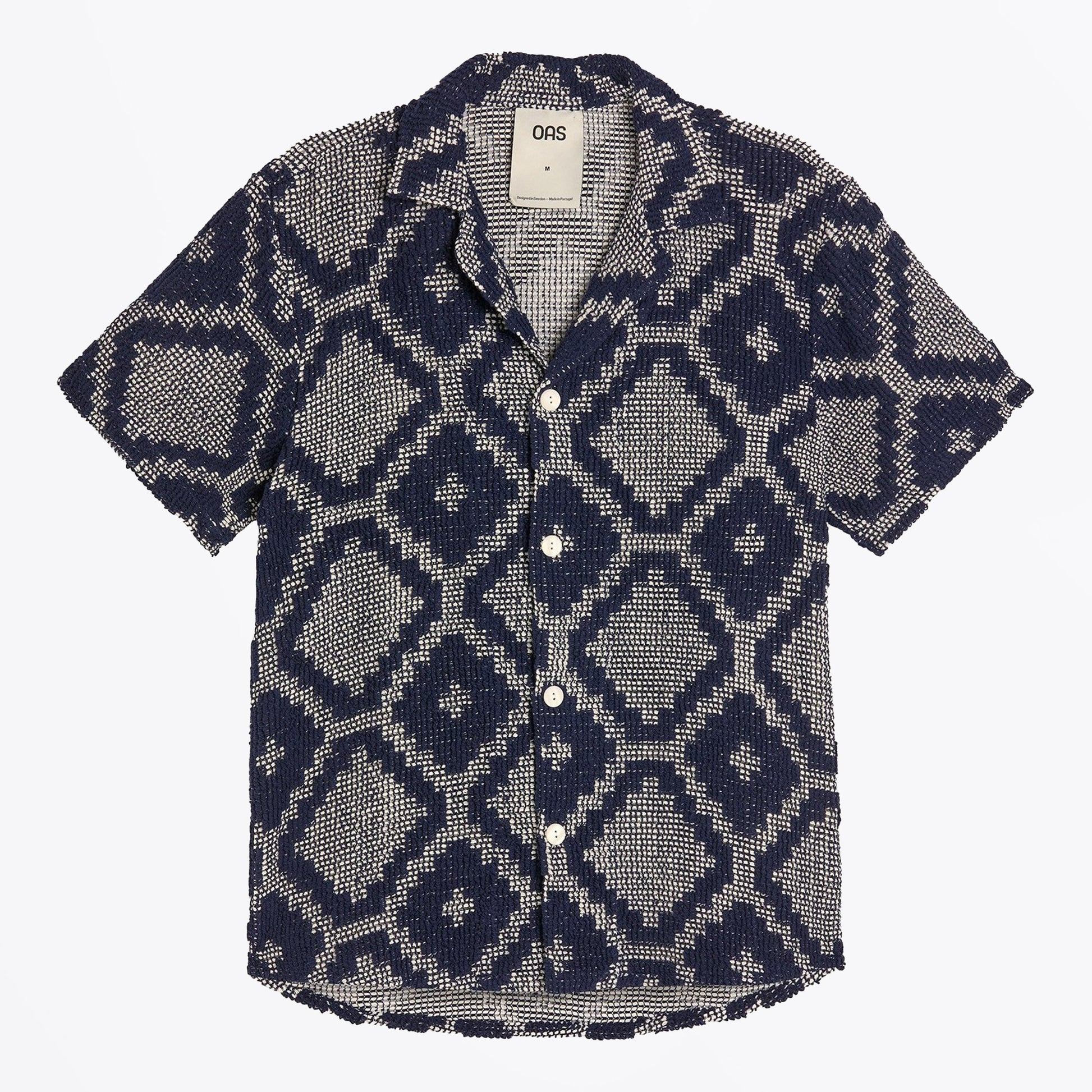 New to Mr & Mrs Stitch for SS25. The OAS journey is about more than just products, it's about the people who bring the brand to life. As a demand-driven label, they collaborate closely with trusted manufacturers and family-run businesses to ensure every garment meets the highest standards—both ours and customers’. OAS designs are made to last a lifetime—timeless pieces created for the creative soul, crafted to transcend trends. The Trastevere Cuba Crochet Shirt brings a modern texture to classic mosaic patterns with its two-tone jacquard design.