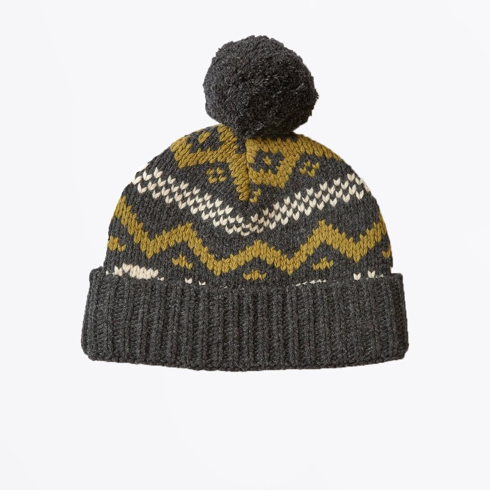 One of our popular men's labels, Oliver Spencer, is a London-based designer that bridges the gap between popular streetwear and traditional tailoring. The brand combines an environmentally sustainable approach to design along with high quality tailoring to create a modern British aesthetic. The Arbury hat by Oliver Spencer has a classic Fair Isle design. Made in a heavy-gauge wool this hat comes with a bobble up top and a ribbed fold-over cuff below. Wrap up warm in winter with this stylish hat!