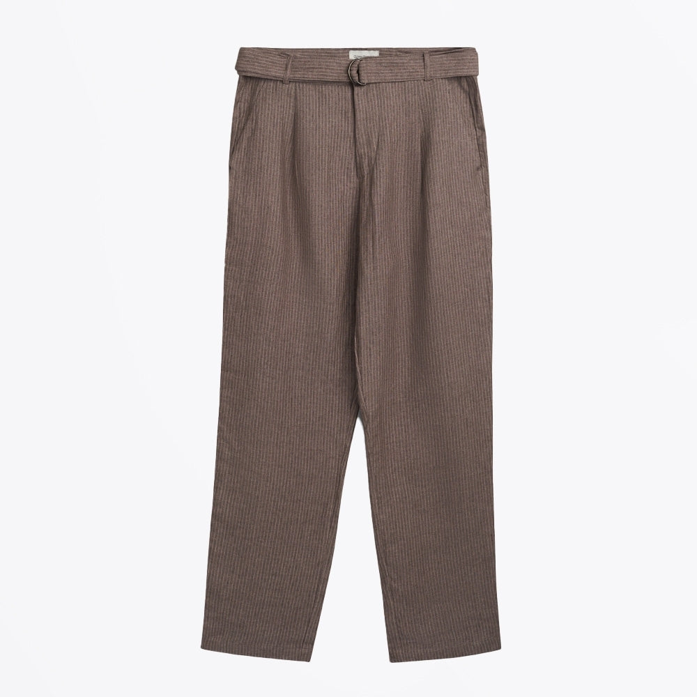 Oliver Spencer has become a staple brand at Mr & Mrs Stitch, Oliver Spencer, is a London-based designer that bridges the gap between popular streetwear and traditional tailoring. The brand combines an environmentally sustainable approach to design along with high quality tailoring to create a modern British aesthetic. A terrific choice for a smart summer style, these Oliver Spencer trousers  are crafted in a luxe linen brown fabric with a pink chalk stripe and features two side pockets, belts loops, button and zip fly fastening, self-fabric belt and a single rear buttoned pocket.  Wear this trouser with a cool white shirt and a pair of Birkenstocks for a smart and versatile summer look.