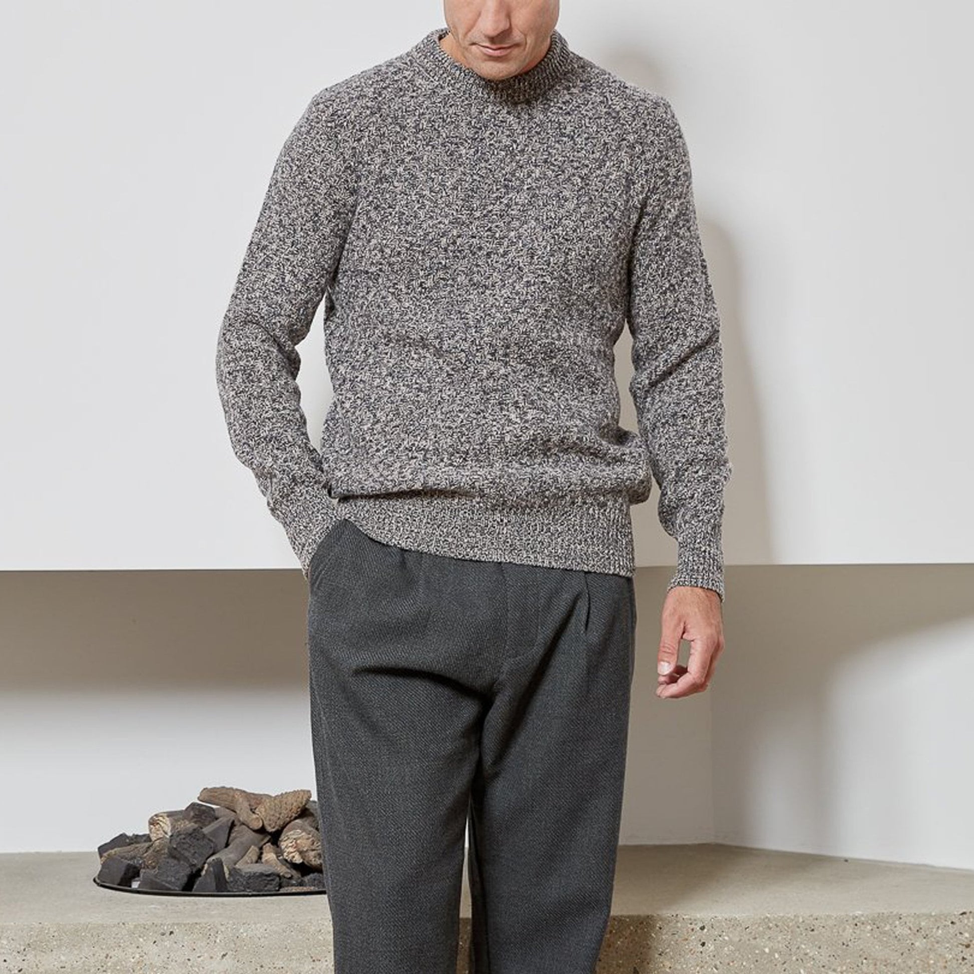 - Blenheim - Wool Knitted Jumper - Beige/Grey