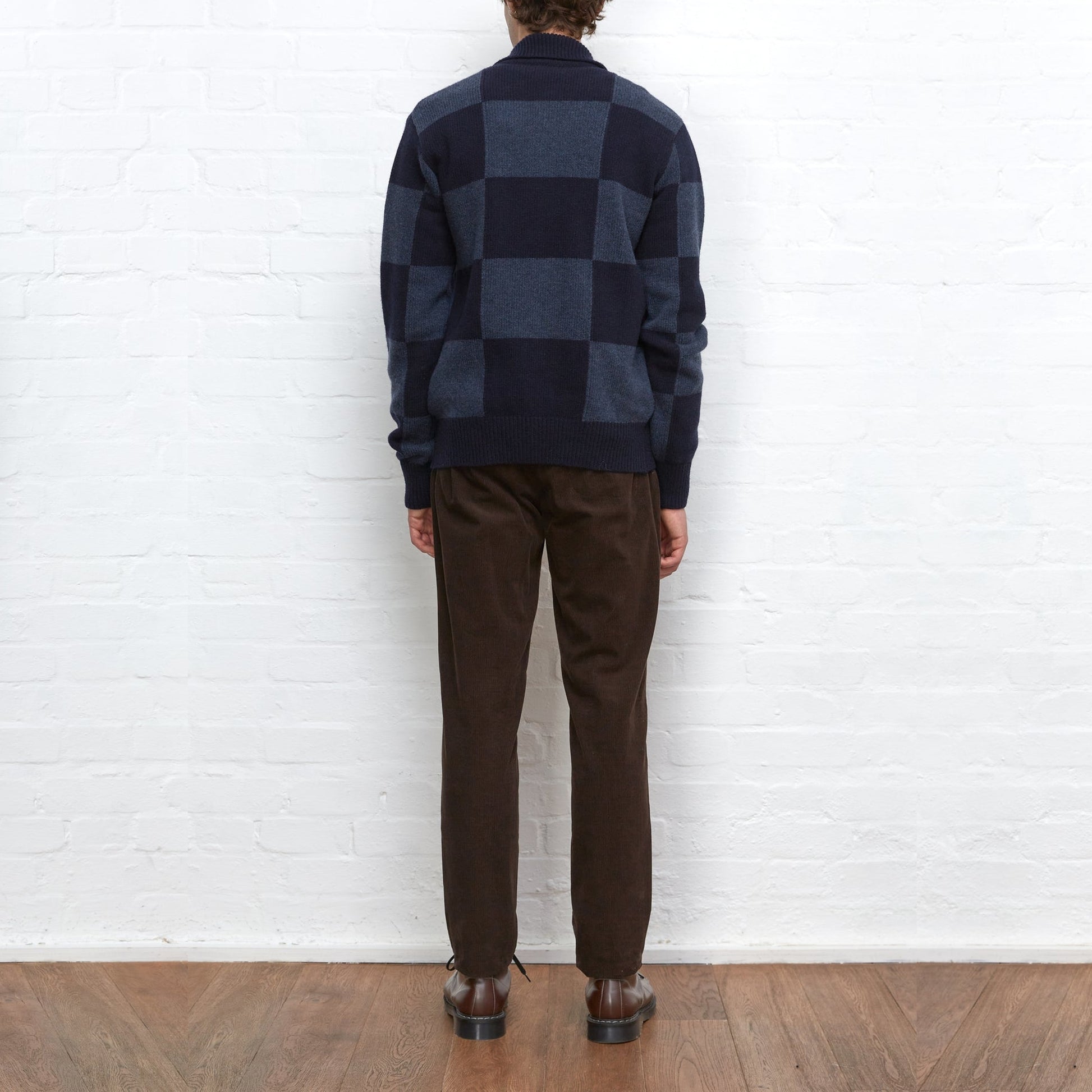 Fast becoming a staple brand at Mr & Mrs Stitch, Oliver Spencer, is a London-based designer that bridges the gap between popular streetwear and traditional tailoring. The brand combines an environmentally sustainable approach to design along with high quality tailoring to create a modern British aesthetic. A terrific choice for a smart winter style, this Oliver Spencer cardigan features a navy panel pattern design, collared neckline, button up fastening, ribbed hem and cuffs. Wear this cardigan with a pair of designer jeans and some Paul Smith trainers.