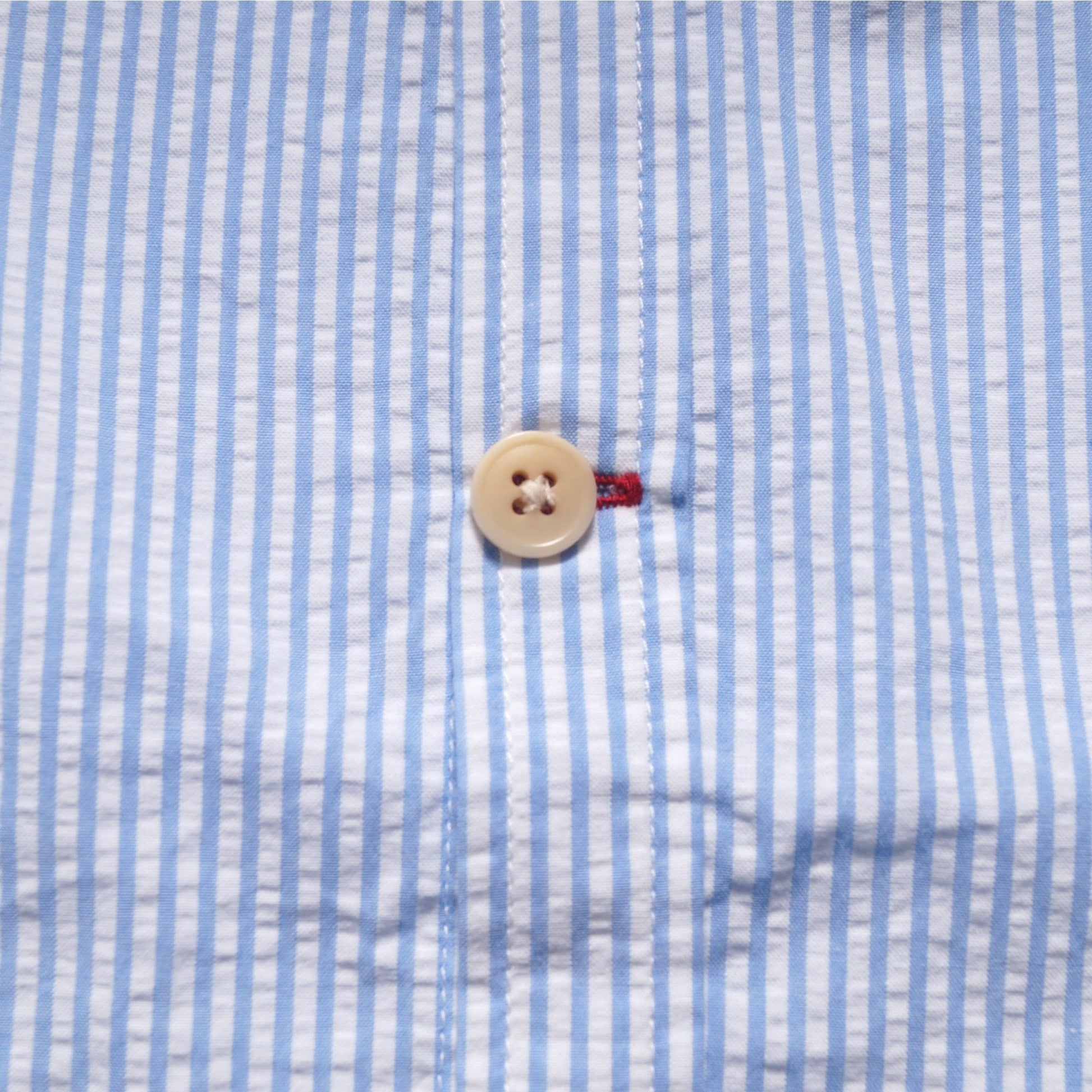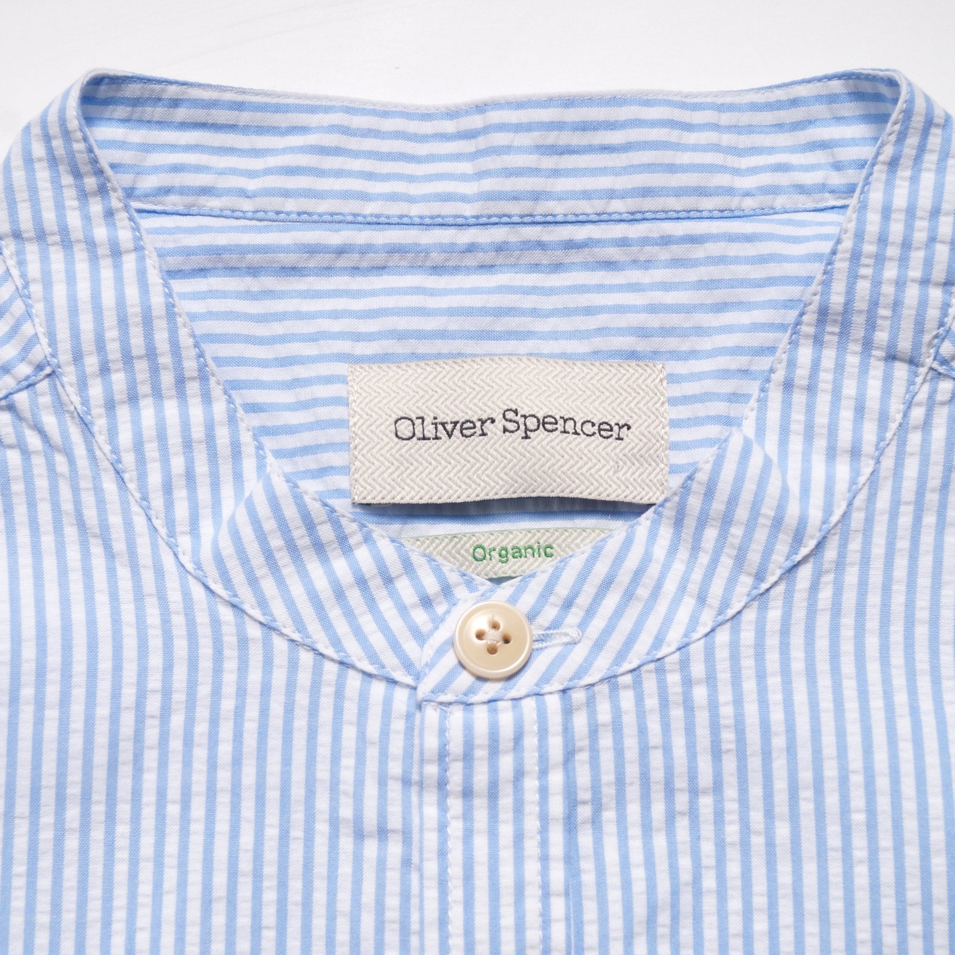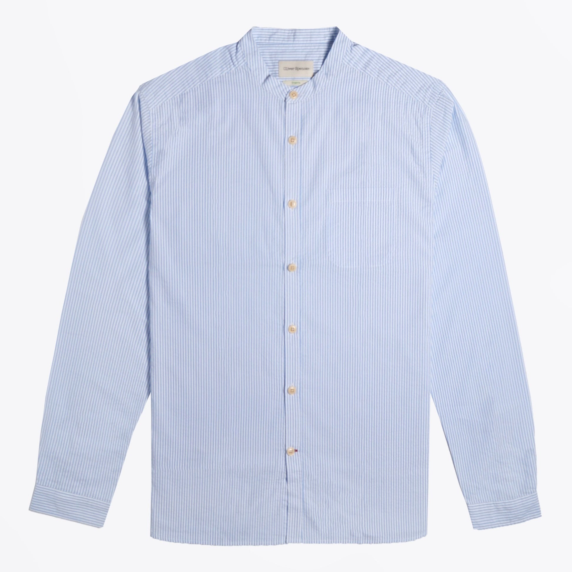 Fast becoming a staple brand at Mr & Mrs Stitch, Oliver Spencer, is a London-based designer that bridges the gap between popular streetwear and traditional tailoring. The brand combines an environmentally sustainable approach to design along with high quality tailoring to create a modern British aesthetic. Featuring a classic pinstripe design, this collarless shirt has a button-down fastening, with a contrasting red buttonhole at the bottom and a patch breast pocket. Wear this shirt with a pair of Universal Works trousers and a pair of designer trainers.