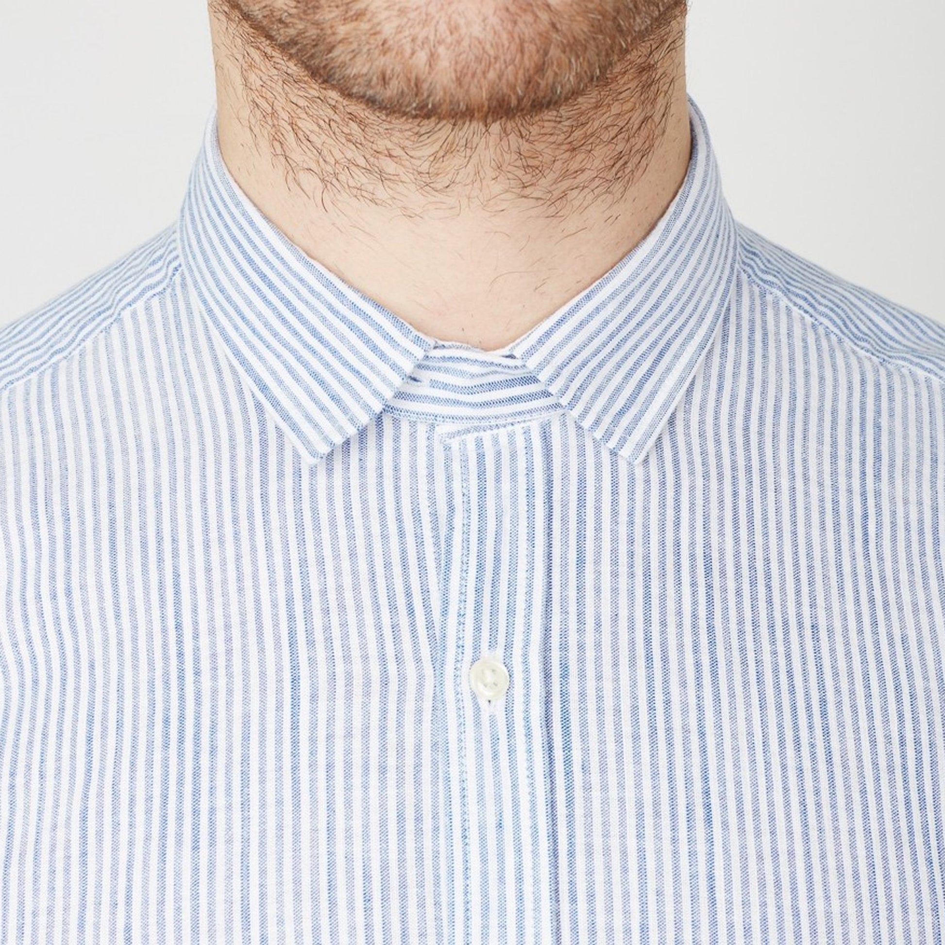 - Clerkenwell Stripe Tab Shirt - Blue/White