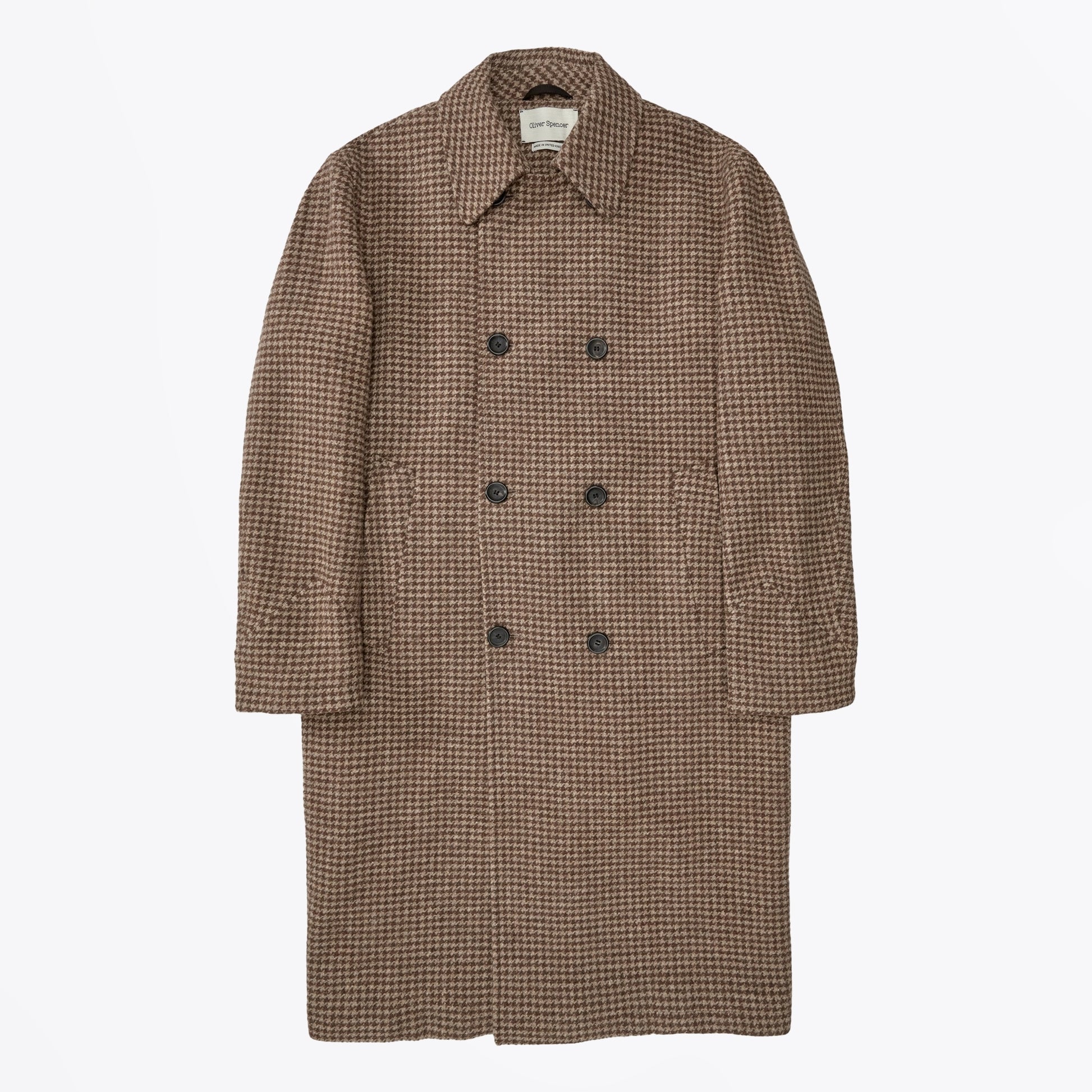Fast becoming a staple brand at Mr & Mrs Stitch, Oliver Spencer, is a London-based designer that bridges the gap between popular streetwear and traditional tailoring. The brand combines an environmentally sustainable approach to design along with high quality tailoring to create a modern British aesthetic. A terrific choice for a smart winter style, this Oliver Spencer double breasted overcoat features a houndstooth design throughout, collared neckline, double breasted, two side pockets, three internal pockets and a rear belt buckle fastening. Wear this coat with a pair of Oliver Spencer trousers and a pair of Hoff trainers.