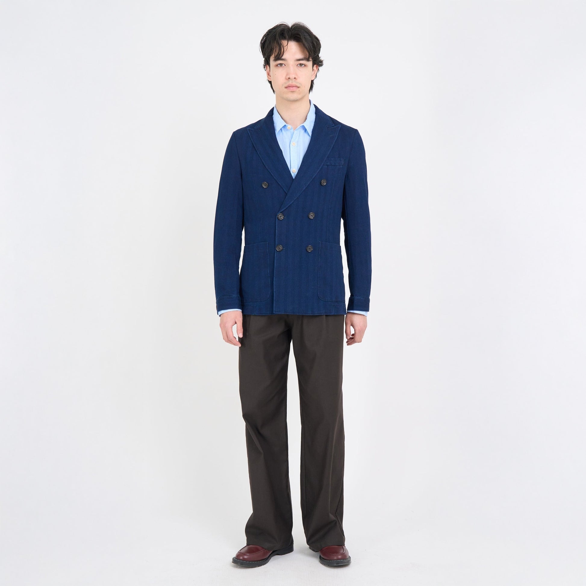Fast becoming a staple brand at Mr & Mrs Stitch, Oliver Spencer, is a London-based designer that bridges the gap between popular streetwear and traditional tailoring. The brand combines an environmentally sustainable approach to design along with high quality tailoring to create a modern British aesthetic. The perfect choice for a contemporary summer style. Made from a blend of cotton and recycled cotton, this double-breasted blazer is woven in a midweight indigo-dyed herringbone for a refined, textured finish. Unlined with a peak lapel and a soft shoulder roll, it’s a perfect addition to your spring/summer wardrobe. It also pairs effortlessly as part of a relaxed suit.