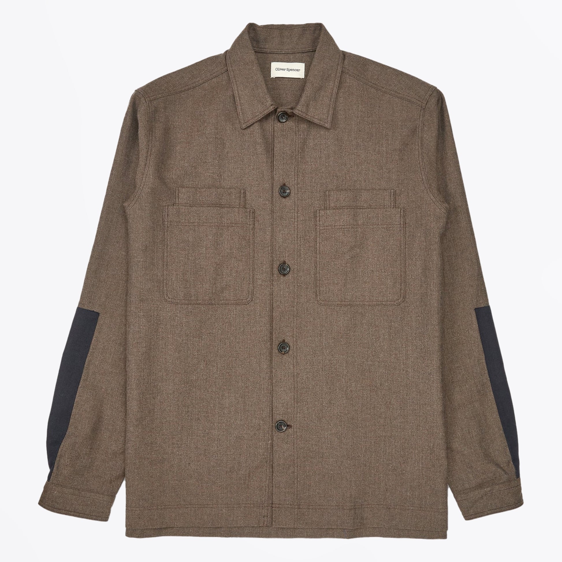 Fast becoming a staple brand at Mr & Mrs Stitch, Oliver Spencer, is a London-based designer that bridges the gap between popular streetwear and traditional tailoring. The brand combines an environmentally sustainable approach to design along with high quality tailoring to create a modern British aesthetic. Add some contemporary style to your winter wardrobe with this overshirt from Oliver Spencer. This brown shirt features a patch sleeve design, with a chunky button-down fastening, a collared neckline, and four front pockets. Wear this shirt with a pair of Edwin jeans and some designer trainers.