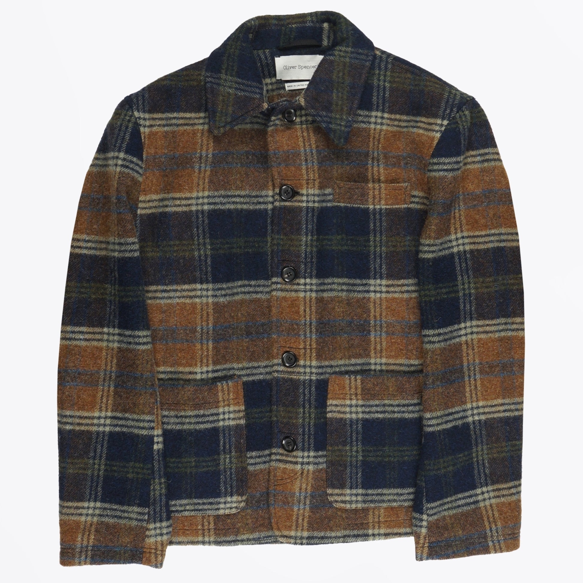 Fast becoming a staple brand at Mr & Mrs Stitch, Oliver Spencer, is a London-based designer that bridges the gap between popular streetwear and traditional tailoring. The brand combines an environmentally sustainable approach to design along with high quality tailoring to create a modern British aesthetic. A terrific choice for a smart winter style, this Oliver Spencer jacket that features a navy and ginger check design throughout. It also includes a collared neckline, chunky button fastening, two, one chest pocket, large patch pockets and two internal pocket. Wear this coat with a pair of Oliver Spencer trousers and a pair of Hoff trainers.