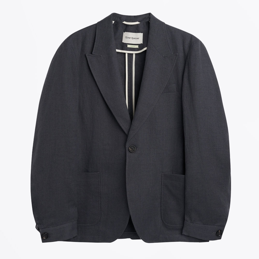 Fast becoming a staple brand at Mr & Mrs Stitch, Oliver Spencer, is a London-based designer that bridges the gap between popular streetwear and traditional tailoring. The brand combines an environmentally sustainable approach to design along with high quality tailoring to create a modern British aesthetic. The Laurel jacket, with its peak lapels and single-breasted design, is an ideal option for spring and summer tailoring. Made from a luxe linen fabric in gunmetal grey which is super versatile for the summer event season it’s the perfect balance of relaxed style and seasonal sophistication, whether worn on its own or as part of a suit.