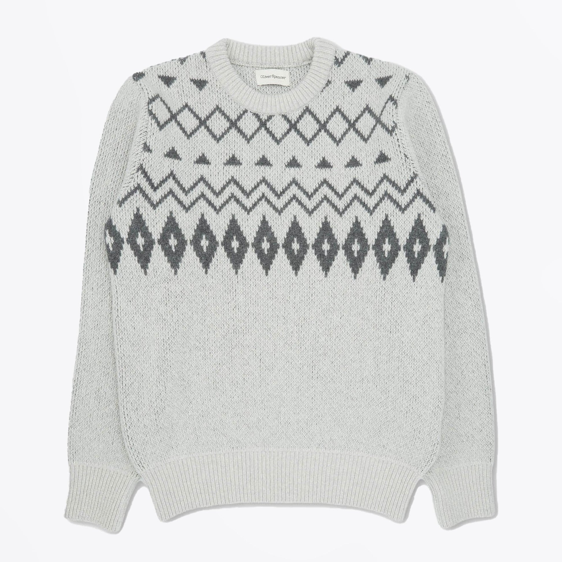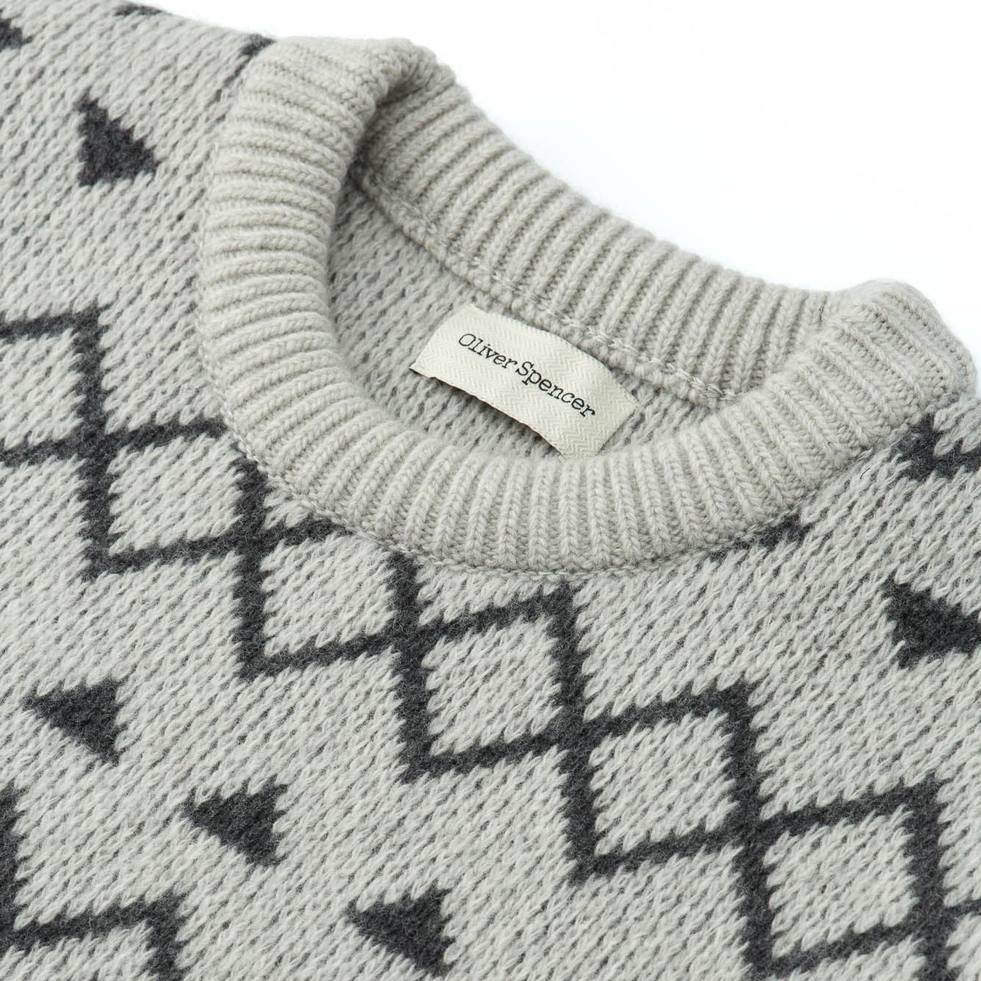 Fast becoming a staple brand at Mr & Mrs Stitch, Oliver Spencer, is a London-based designer that bridges the gap between popular streetwear and traditional tailoring. The brand combines an environmentally sustainable approach to design along with high quality tailoring to create a modern British aesthetic. Add some interesting pattern into your knitwear wardrobe this season. This chunky jumper features a diamond fairisle pattern in a charcoal grey shade, on a light grey base. This jumper has a ribbed crew neckline, ribbed cuffs and hem and is crafted from an extra-fine wool for great comfort. Wear this jumper with your favourite pair of straight leg jeans and some designer trainers.