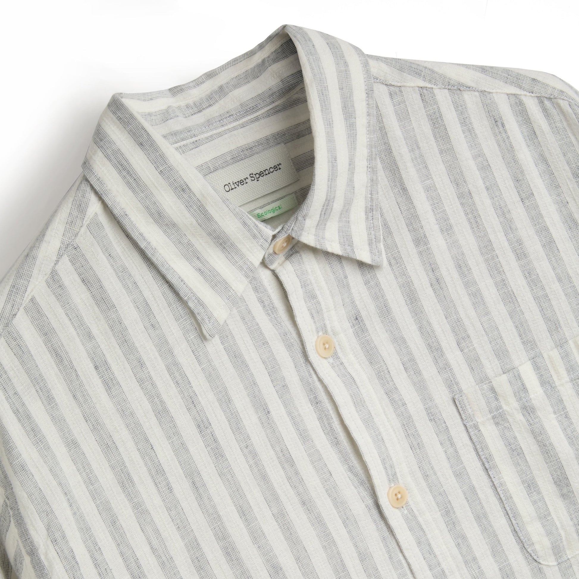 Fast becoming a staple brand at Mr & Mrs Stitch, Oliver Spencer, is a London-based designer that bridges the gap between popular streetwear and traditional tailoring. The brand combines an environmentally sustainable approach to design along with high quality tailoring to create a modern British aesthetic. A terrific choice for a smart summer style, this Oliver Spencer New York shirt has a stripe design featuring a collared neckline, button up fastening and button cuffs. Wear this shirt with a pair of Oliver Spencer trousers and a pair of Hoff trainers.