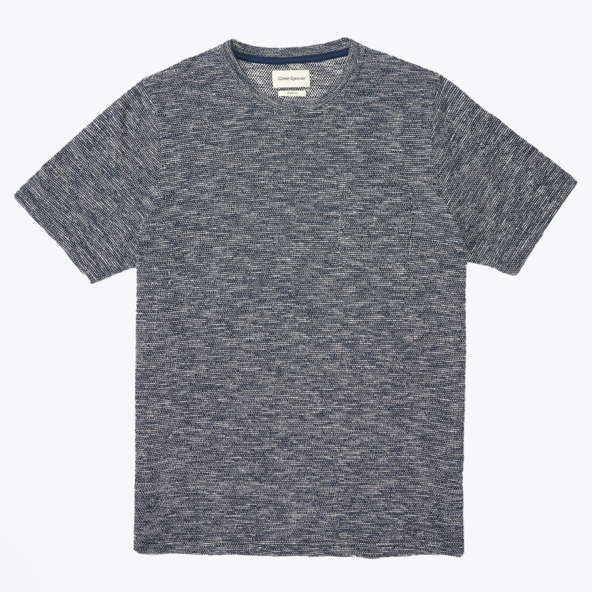 Fast becoming a staple brand at Mr & Mrs Stitch, Oliver Spencer, is a London-based designer that bridges the gap between popular streetwear and traditional tailoring. The brand combines an environmentally sustainable approach to design along with high quality tailoring to create a modern British aesthetic. Update your basics this season with some designer branding. This tee has the added bonus of an interesting texture  to it, featuring a cotton blend material in a grainy colour finish, with a crew neckline and a patch pocket on the breast. Wear this tee with a pair of MMX chino shorts and some Paul smith trainers.