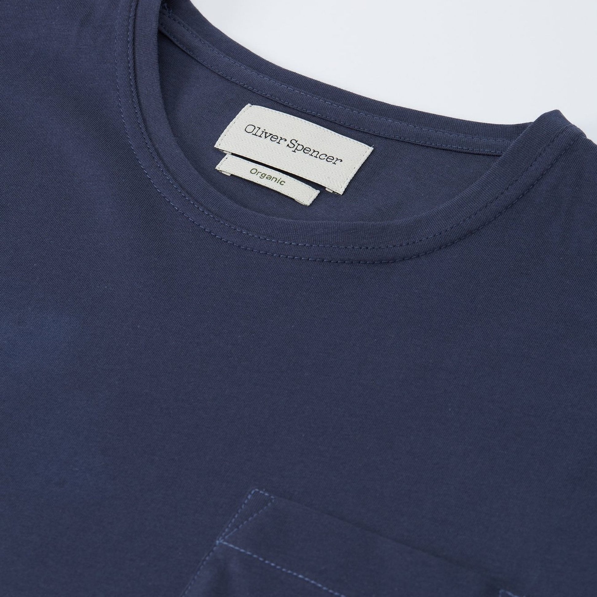 One of our newest labels, Oliver Spencer is a London-based designer that bridges the gap between popular streetwear and traditional tailoring. The brand combines an environmentally sustainable approach to design along with high quality tailoring to create a modern British aesthetic. This classic Oli tee is constructed in a soft organic cotton for a durable and comfortable finish. This style of t-shirt is the perfect example of refined minimal dressing and is finished with crew neckline, short sleeves and a patch pocket on the left hand side of the chest. Other details include a square hem and Oliver Spencer co-ordinates tab. The Oli's Tee is a range of simple, everyday t-shirts that pop up every season. They are regular in fit and sit in between being a slim and a boxy cut.