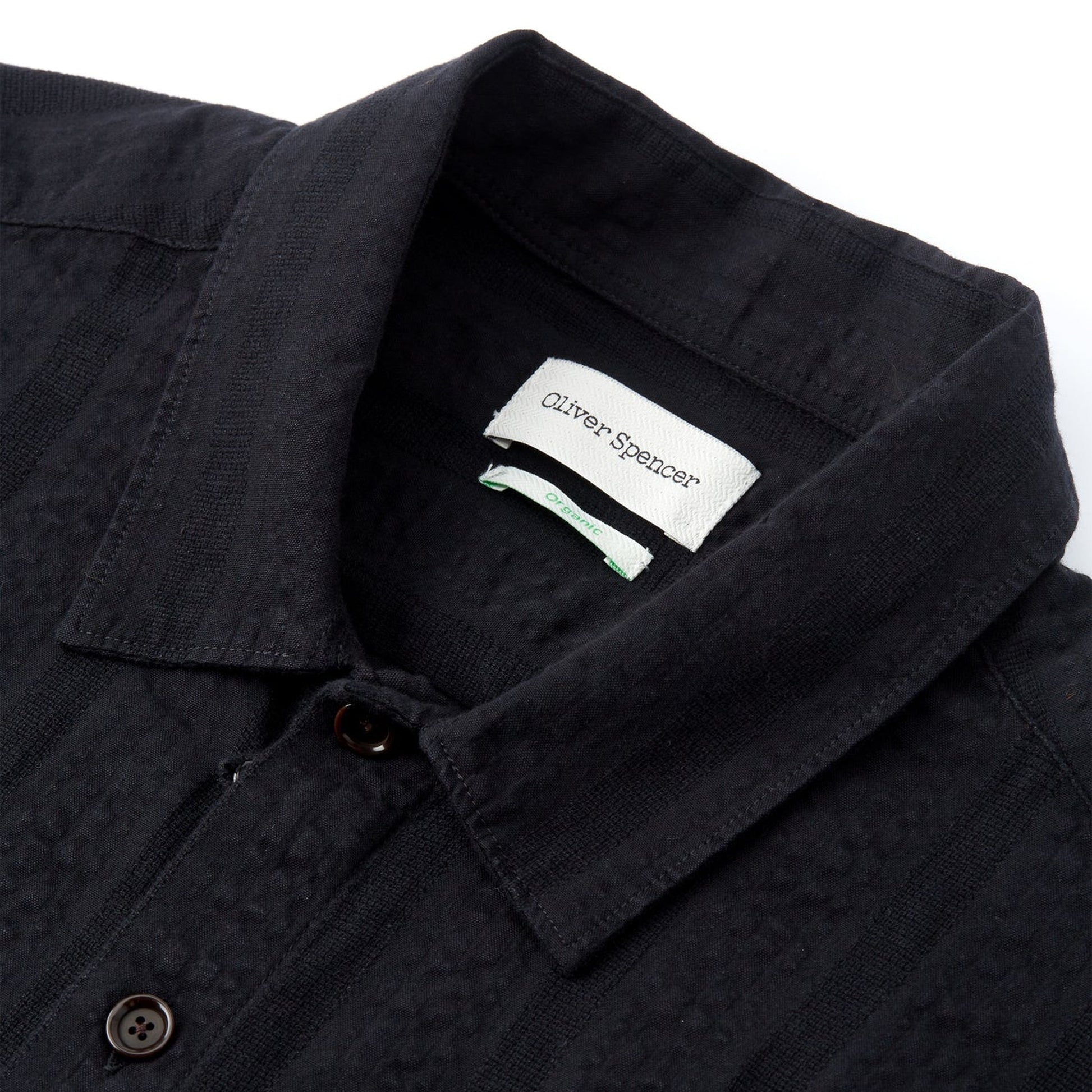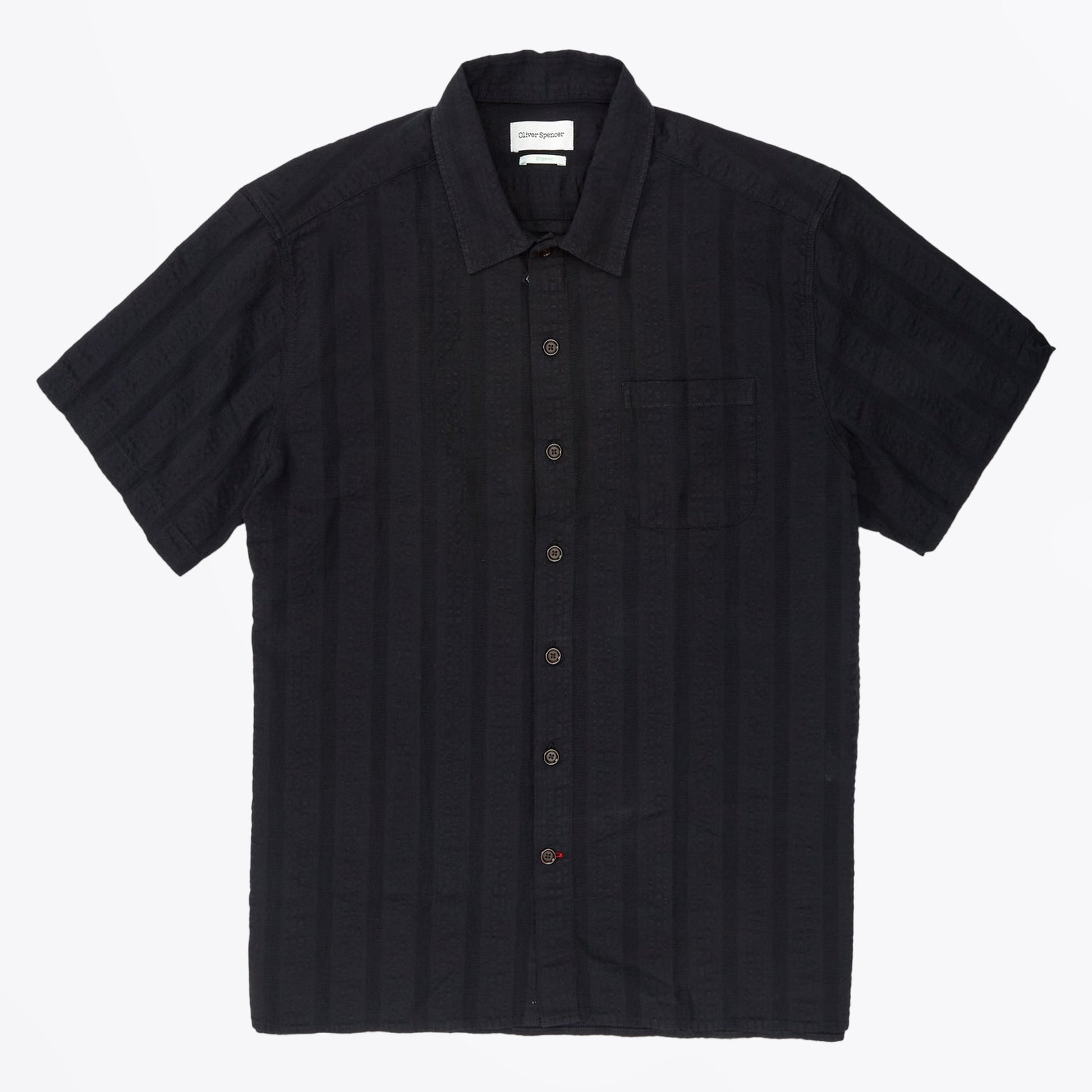 Fast becoming a staple brand at Mr & Mrs Stitch, Oliver Spencer, is a London-based designer that bridges the gap between popular streetwear and traditional tailoring. The brand combines an environmentally sustainable approach to design along with high quality tailoring to create a modern British aesthetic. A great way to add contemporary style to your new season wardrobe, this black short sleeved shirt is crafted in a striped seersucker material, and features a button down fastening, with a breast pocket, and a collared neckline. Wear this shirt with a pair of Edwin jeans and some designer trainers.
