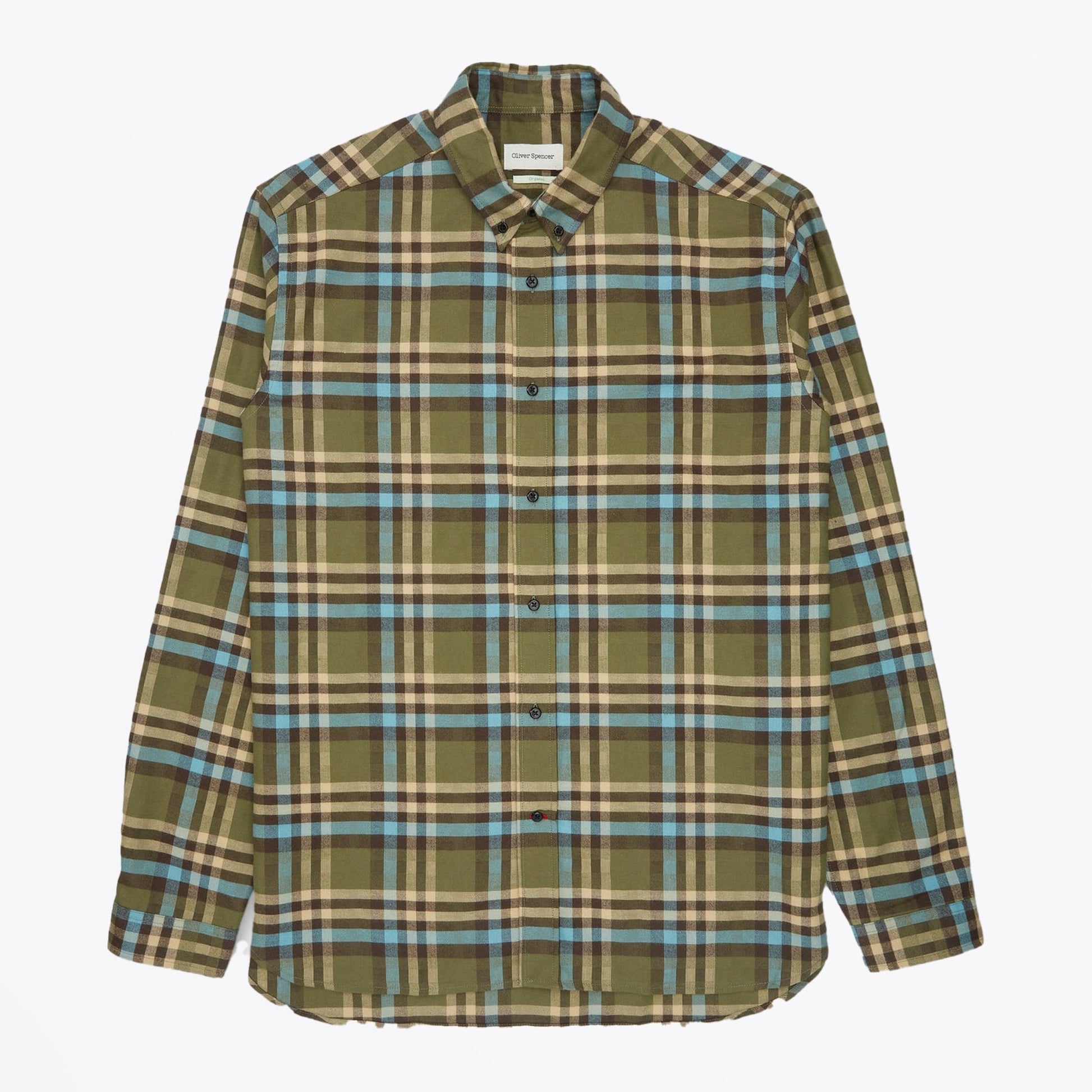 Fast becoming a staple brand at Mr & Mrs Stitch, Oliver Spencer, is a London-based designer that bridges the gap between popular streetwear and traditional tailoring. The brand combines an environmentally sustainable approach to design along with high quality tailoring to create a modern British aesthetic. Update your shirt collection with a colourful patterned option from Oliver Spencer. This shirt features a checked pattern in blue and cream on an olive-green base. This shirt is crafted from a slightly brushed cotton and has a button-down fastening, a buttoned collar, and buttoned cuffs. Wear this shirt with a pair of dark-wash denim and some designer trainers.