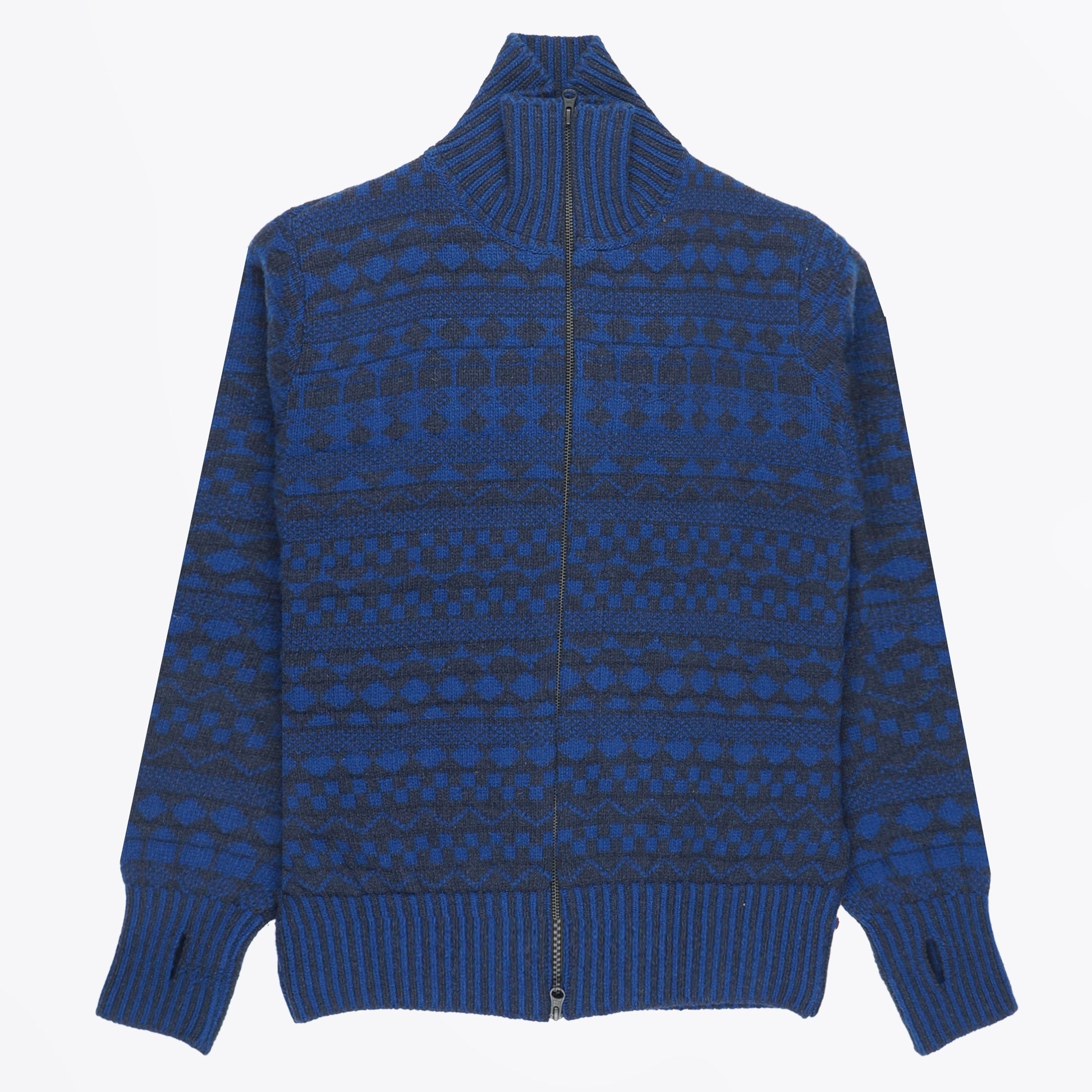 Fast becoming a staple brand at Mr & Mrs Stitch, Oliver Spencer, is a London-based designer that bridges the gap between popular streetwear and traditional tailoring. The brand combines an environmentally sustainable approach to design along with high quality tailoring to create a modern British aesthetic. A terrific choice for a smart winter style, this Oliver Spencer blue coloured knitwear features a zip fastening, high neckline, ribbed hem and cuffs, thumb hole detail and asymmetric pattern throughout the jumper. Wear this knitwear with any winter outfit for a comfortable and stylish look.