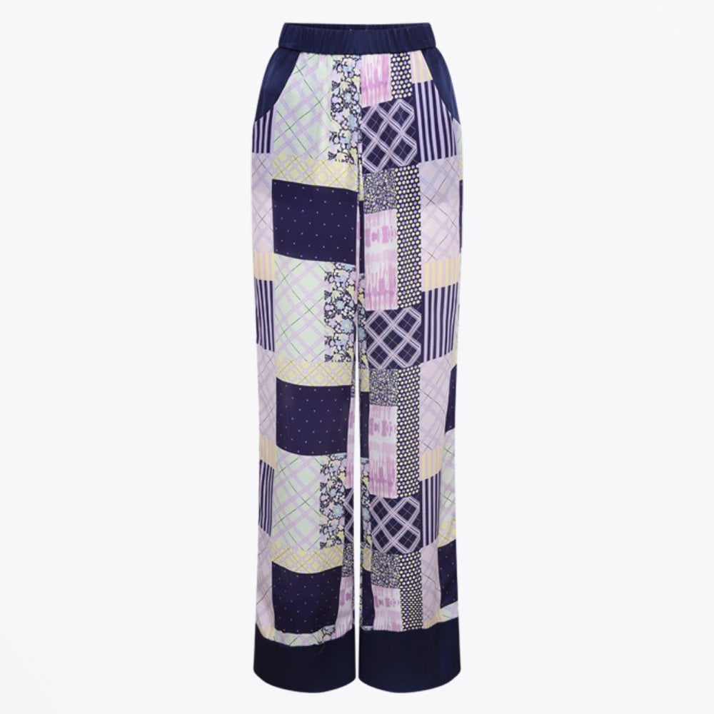 - Sammy Silk Cotton Trousers - Dark Patchwork