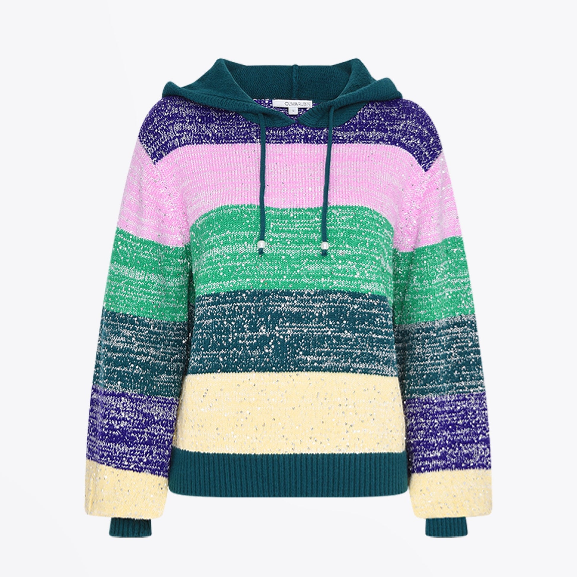 Introducing Olivia Rubin to Mr & Mrs Stitch! Best known for its kaleidoscopic dresses and penchant for the unique, the London-based label, Olivia Rubin has proven a hit for playful yet polished occasion-wear. The brand has a unique take on modern femininity and focuses on brightly-coloured prints! The Suki Stripe Knitted hoodie is designed with drawstring collar with pearl detailing. This soft, slouchy style in ice-cream pastel rainbow hues features glistening sequins along with an easy-to-wear silhouette. Crafted from a luxurious wool blend this feminine pullover is designed with a hood, elasticated ribbed cuffs and hemline.