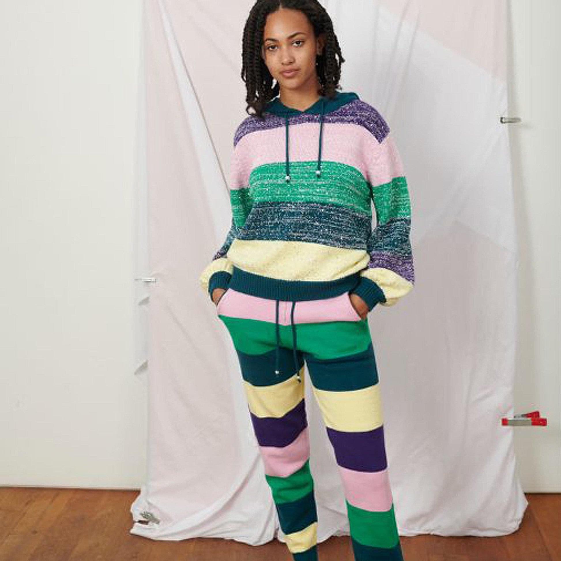 Introducing Olivia Rubin to Mr & Mrs Stitch! Best known for its kaleidoscopic dresses and penchant for the unique, the London-based label, Olivia Rubin has proven a hit for playful yet polished occasion-wear. The brand has a unique take on modern femininity and focuses on brightly-coloured prints! The Tilda Stripe Knitted joggers are designed with drawstring waist with delicate pearl detailing and come in ice-cream pastel rainbow hues. Crafted from a luxurious wool blend these joggers are designed with two side pockets and cuffed legs.