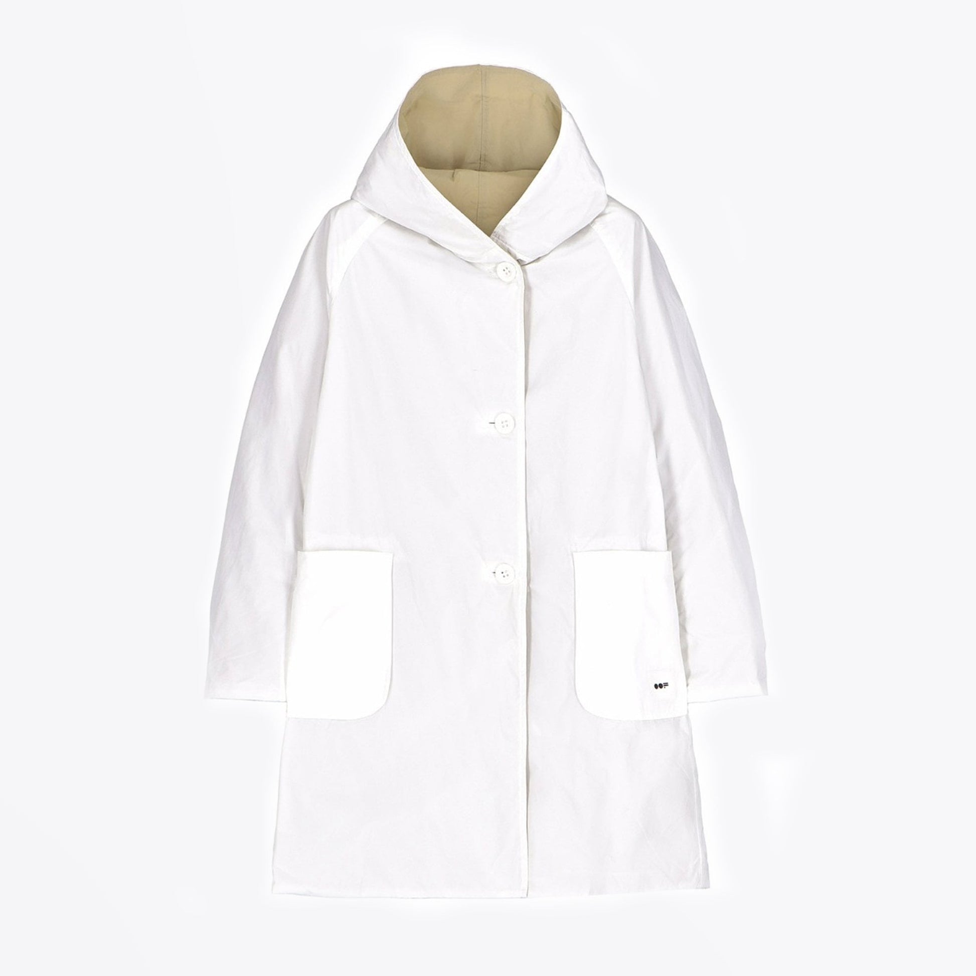 Outwear label, OOF WEAR created in 2016 offers the ultimate outerwear that provides comfort, warmth and protection. OOF Wear creates classics for women that are reinterpreted crafting new silhouettes and materials in contrast with each other that are mixed with nuances and sophisticated patterns.This women's reversible parka will have you looking stylish and dry throughout the year. This practical jacket features a hood, double breasted closure featuring a single button and four-hole buttonholes designed according to colour variants. Finished with split in the middle back, raglan sleeves, bucket pockets on the sides and on the inside features side pockets. Super practical and comfortable for the wearer for all day-to-day occasions.