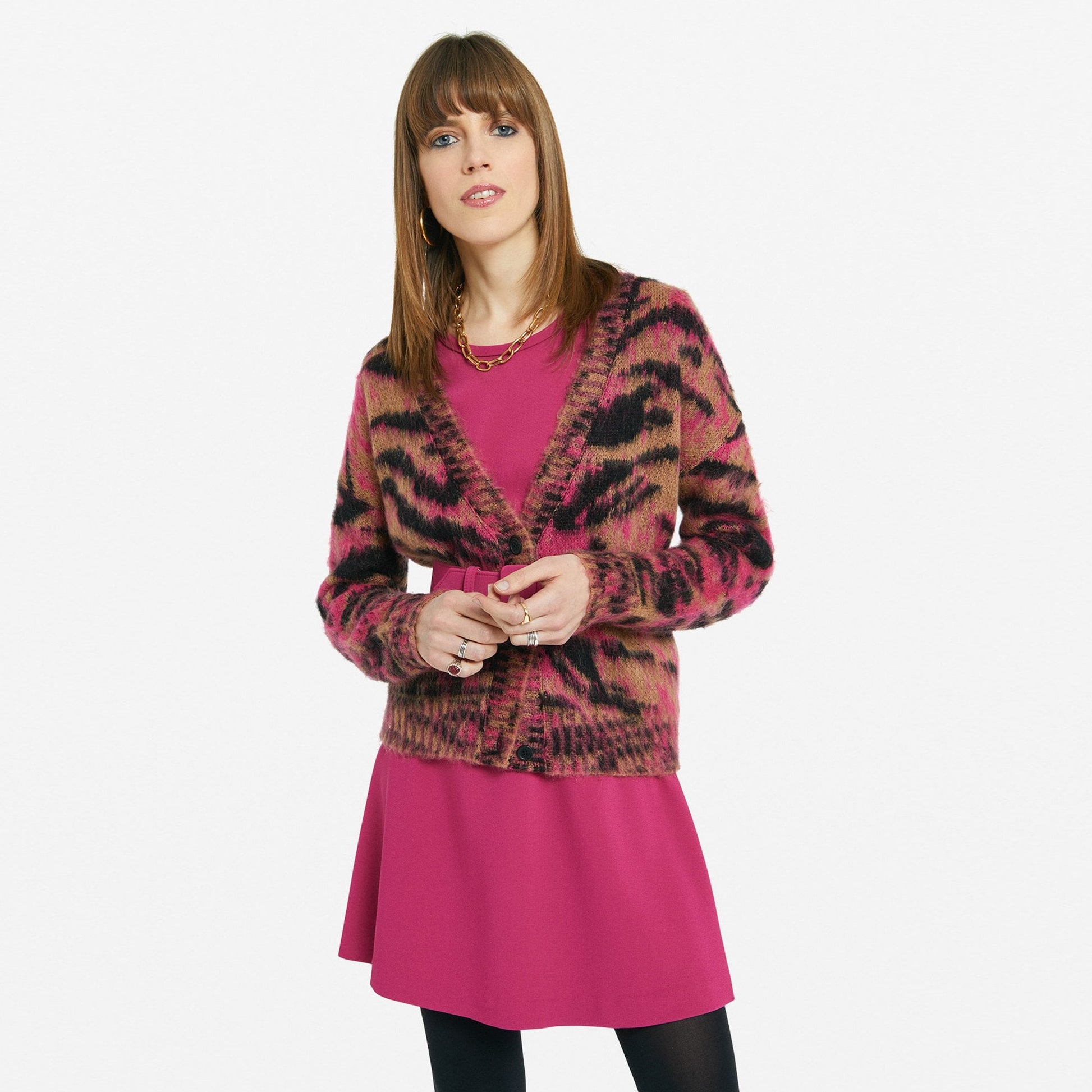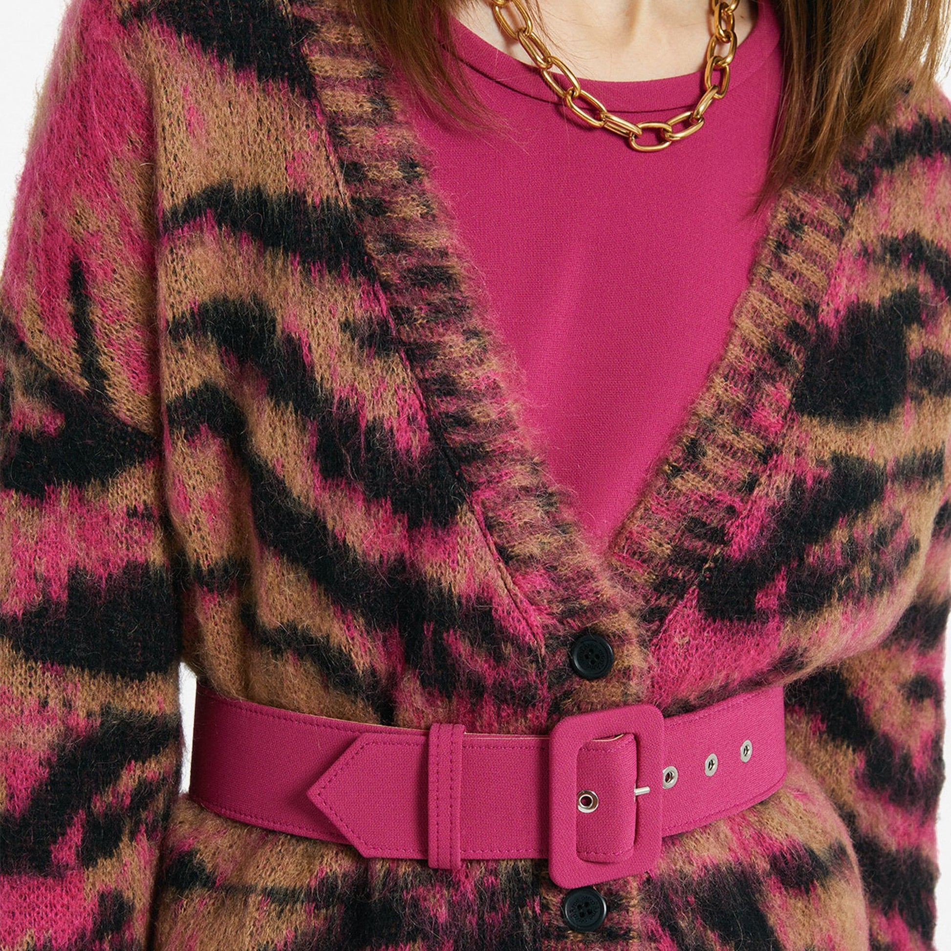 - Animal Print Cardigan - Pink