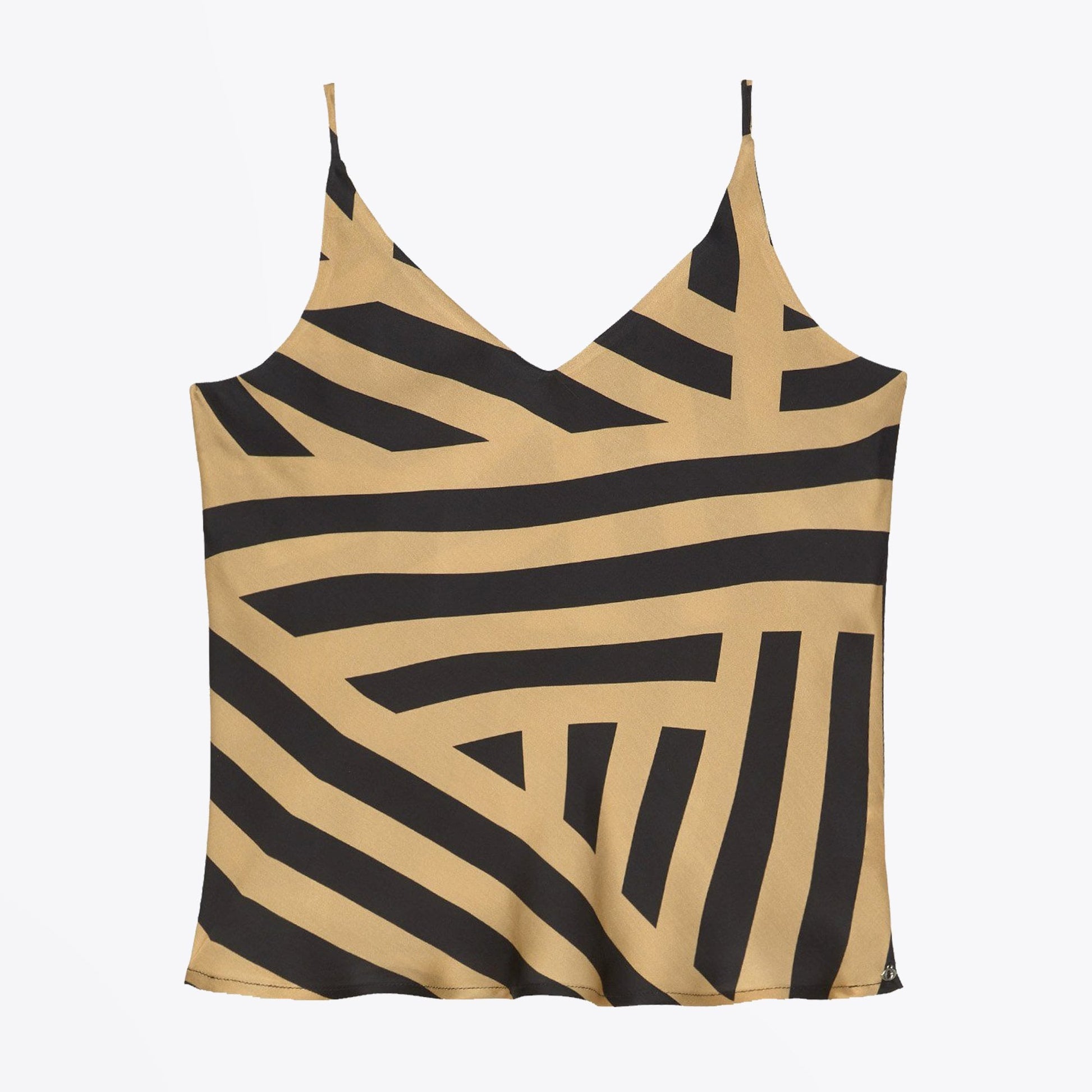 An Italian breath of life to womenswear, Ottod’Ame has one vision, which is to bring strong, elegant and fresh designs to the market. This viscose animal printed top is the perfect layering piece for the new season. This striking top is a fashion-forward and feminine piece and is sure to make you stand out from the crowd. Features include spaghetti straps and v-neckline. For a weekend look pair this top with a skirt or alternatively with a jeans for a laid-back weekend look or with matching relaxed wide leg pants for a super chic look.
