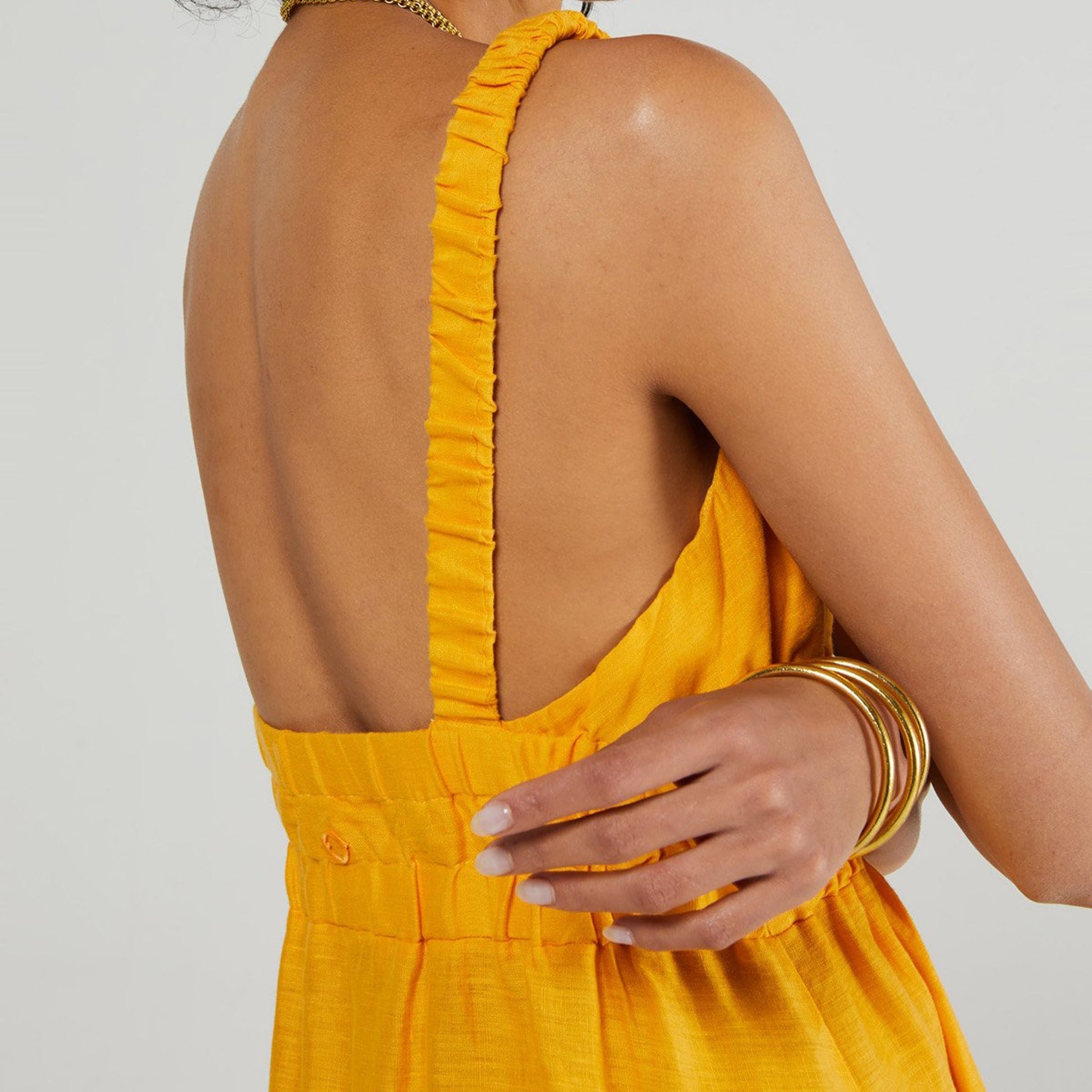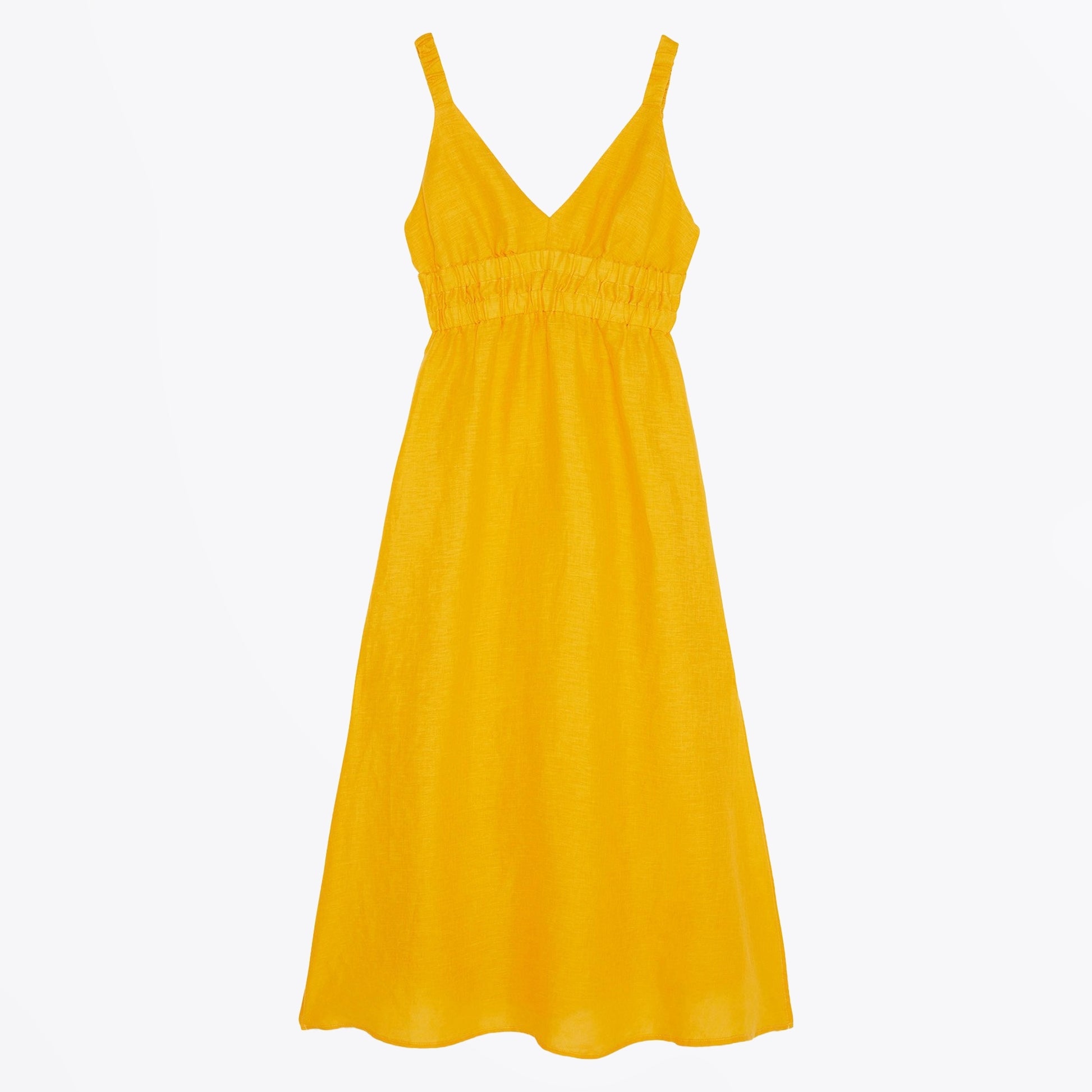 An Italian breath of life to womenswear, Ottod’Ame has one vision, which is to bring strong, elegant, and fresh designs to the market. Add a great pop of colour your wardrobe this season with a dress from Ottod’Ame. A great staple in any wardrobe, this linen long dress features a sleeveless design, elastic band on the centre, elasticated straps, and a slit on either side. Wear this with some Veja sneakers.