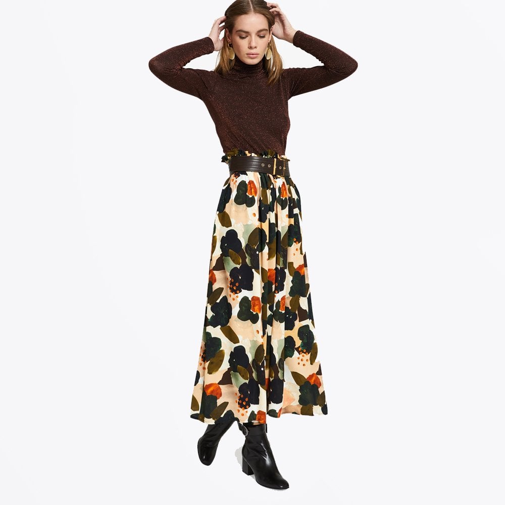 An Italian breath of life to womenswear, Ottod’Ame has one vision, which is to bring strong, elegant and fresh designs to the market. This pleated long skirt with watercolour print is the perfect shirt for the new season. The striking print creates a fashion-forward and feminine look and is sure to make you stand out from the crowd.  this eye-catching skirt features a full pleated skirt in a midi-length style. For a weekend look pair this skirt with knitwear or a tee or alternatively with a crisp shirt for a smart office look.
