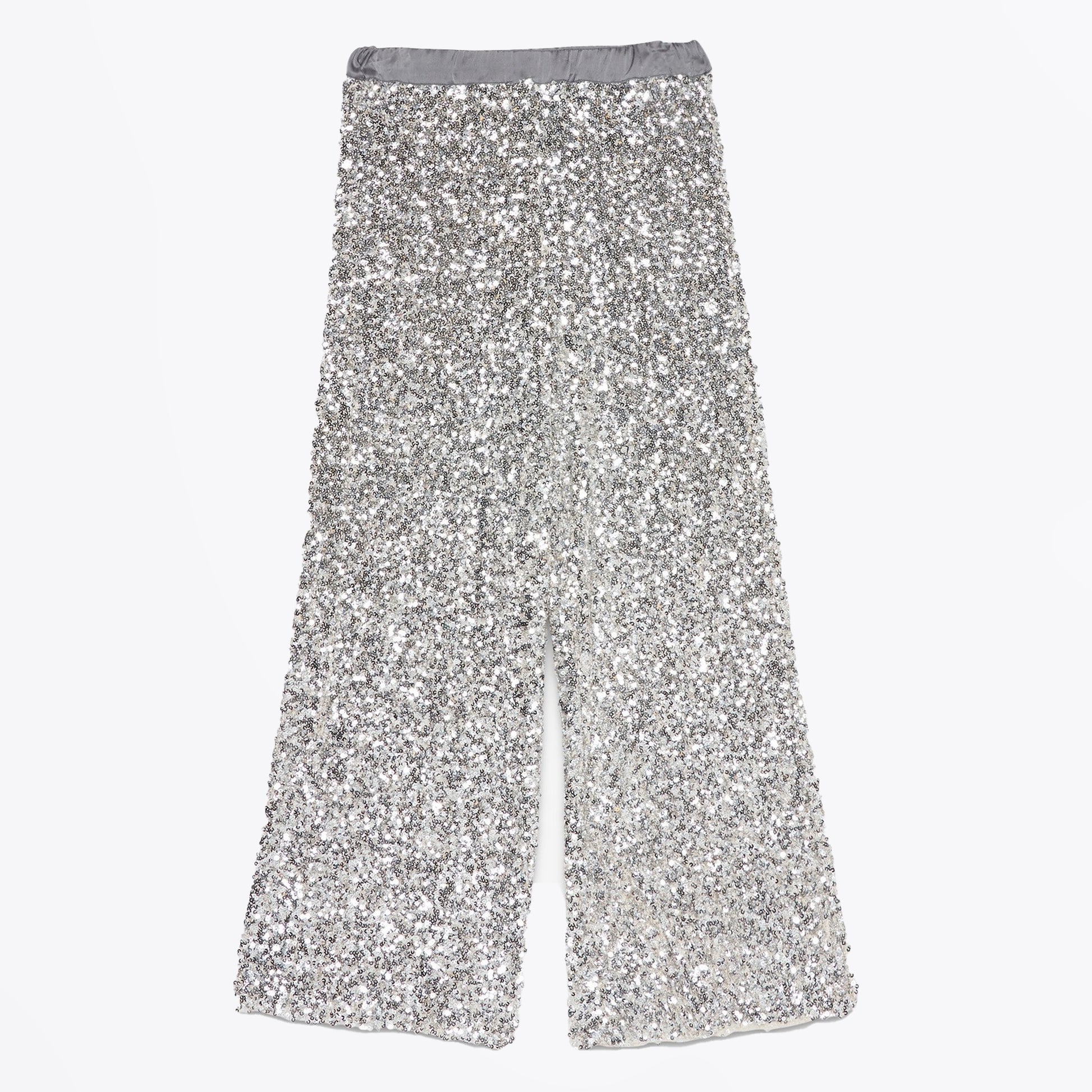 TWA-TP9433 SEQUIN TROUSERS - SILVER