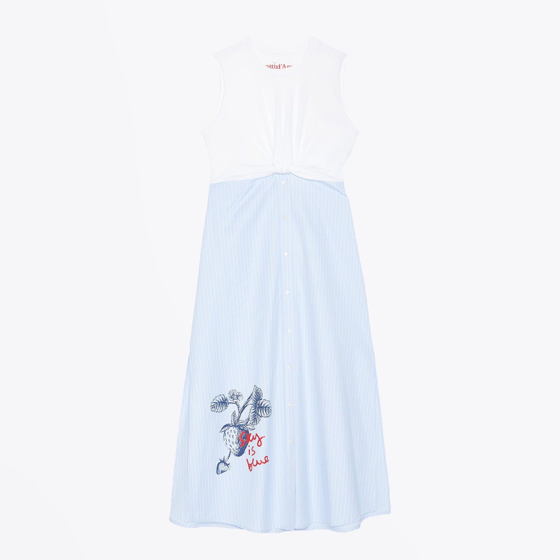 An Italian breath of life to womenswear, Ottod’Ame has one vision, which is to bring strong, elegant and fresh designs to the market. This midi sleeveless dress with stripe print and logo is the perfect piece for all-year round. The print and silhouette is a fashion-forward and feminine look and features a knot effect corset and side slits on the bottom skirt. This piece is sure to make you are ready for any occasion.
