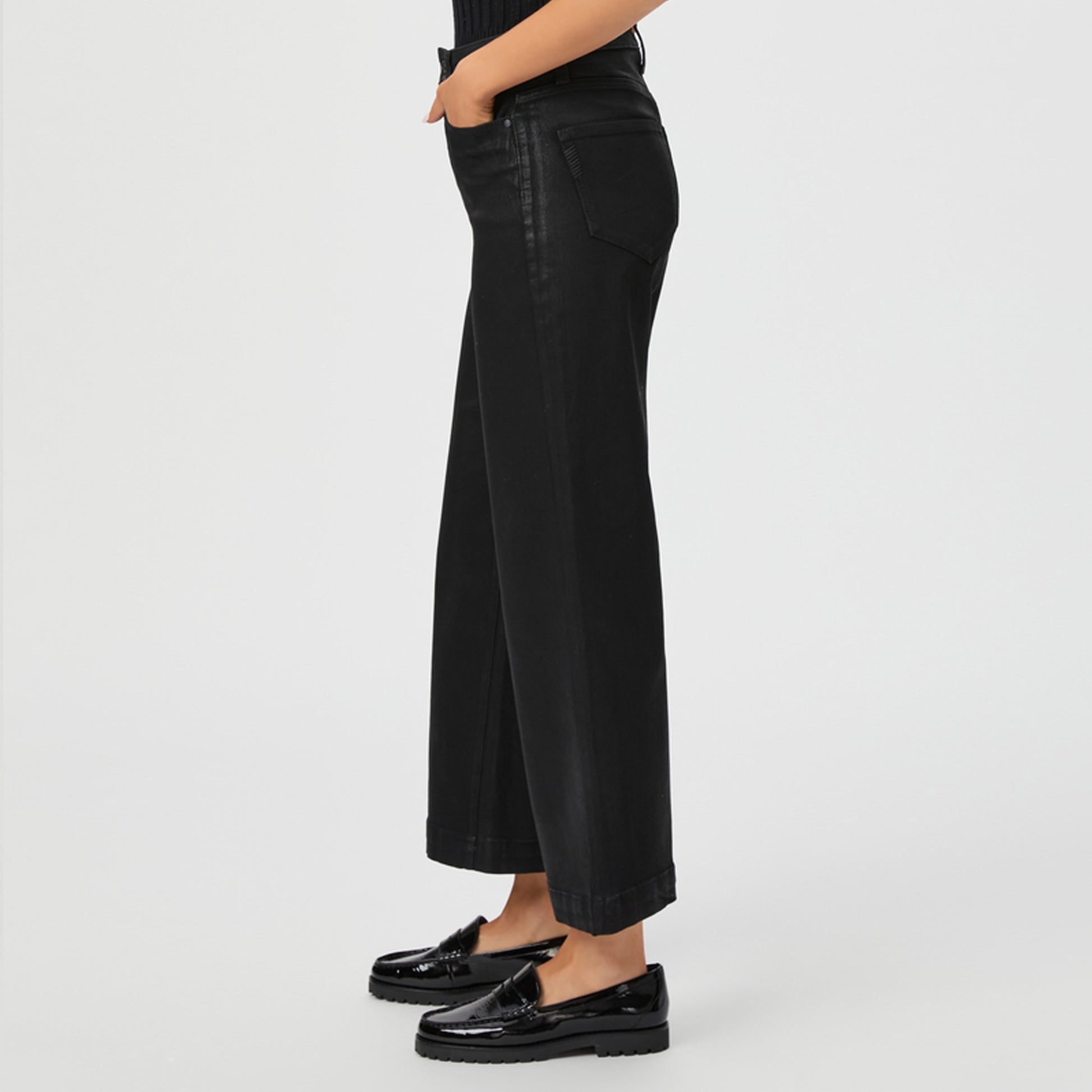 PAIGE is a California lifestyle collection for men and women. The women’s collection is made up of denim that takes you from morning to moonlight, feminine blouses, effortlessly chic dresses, edgy leather toppers and everything in between. These jeans are a great way to bring a luxurious feel to your wardrobe. These flattering, high rise, wide leg, relaxed jeans are crafted in a cotton material with a slight stretch. These Anessa jeans have had an update with the coated look. Crafted from PAIGE TRANSCEND denim and in a black luxe coating wash these jeans feature a 5-pocket style, belt loops, zip fly fastening and black hardware with a patch featuring the Paige logo on the back. Wear these jeans with your favourite knitwear and a pair of Mexicana boots.