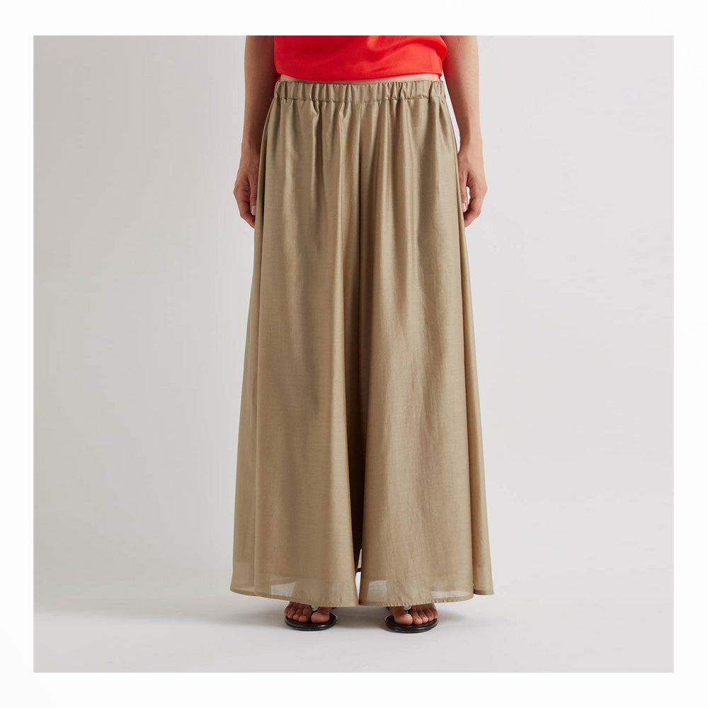 Effortlessly elegant palazzo pants in soft beige tones, crafted from breathable lyocell fabric. The relaxed, wide-leg silhouette offers comfort and sophistication, perfect for layering or wearing solo. Neutral sand and tan hues complement any wardrobe, making these versatile trousers ideal for both casual and dressed-up occasions. The fluid drape of lyocell creates a graceful, flattering fit that moves with you throughout the day.