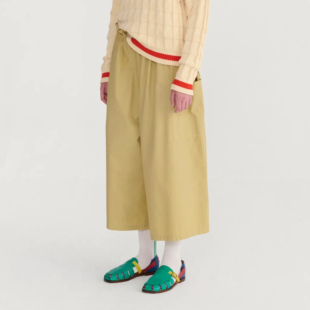 Paper Touch Culotte – Khaki Crafted from a premium cotton blend with a distinctive paper-touch finish, these culottes deliver refined comfort with contemporary style. The breathable fabric drapes elegantly whilst maintaining its shape, making them ideal for warm-weather dressing. The relaxed silhouette flatters various body types and pairs effortlessly with both casual and smart-casual pieces. Perfect for those seeking versatile, quality basics that transition seamlessly from day to evening wear.