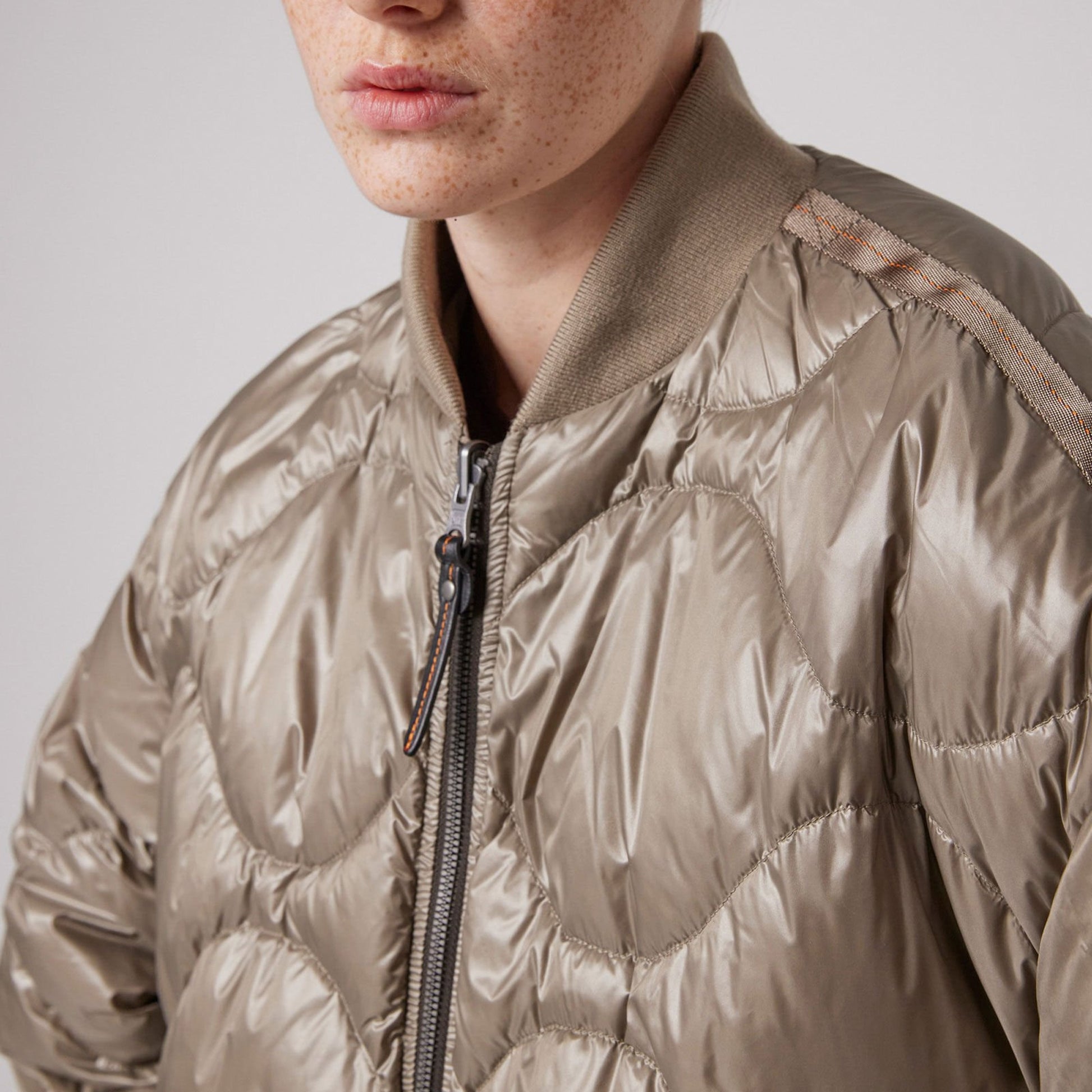 Inspired by the rescue squadrons in Alaska outerwear specialist, Parajumpers offers an innovative collection of jackets with hi-tech components and practical features. This down-fiiled reversible bomber jacket in atmosphere is the perfect layering garment for the cooler season. This coat has a wide array of features and hosts two snap button front pockets as well as zip pockets on the sleeve. This robust and versatile winter coat has been perfectly finished with two-way front zipper, ribbed cuffs, elastic rib neck, side zip vents and PJS patch on the left sleeve. The oversized relaxed fit gives a cool street style. Your must-have for the new season!