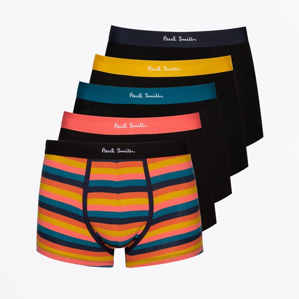 Paul Smith is a distinguished British designer who is renowned for his creative aesthetic, which combines tradition and modernity. Crafted in a soft cotton blend these low-rise boxer briefs feature one pair of striped boxers and 4 pairs of black boxers each offering an elasticated colourful waistband featuring contrasting Paul Smith branding