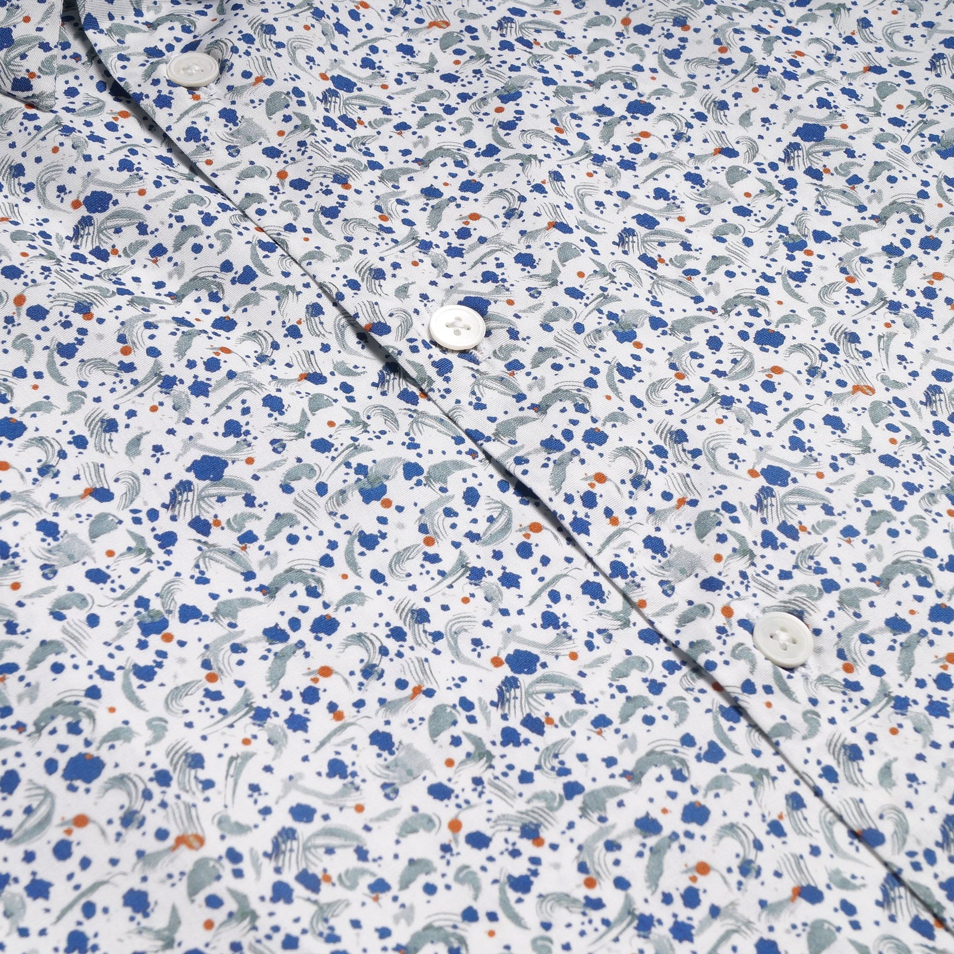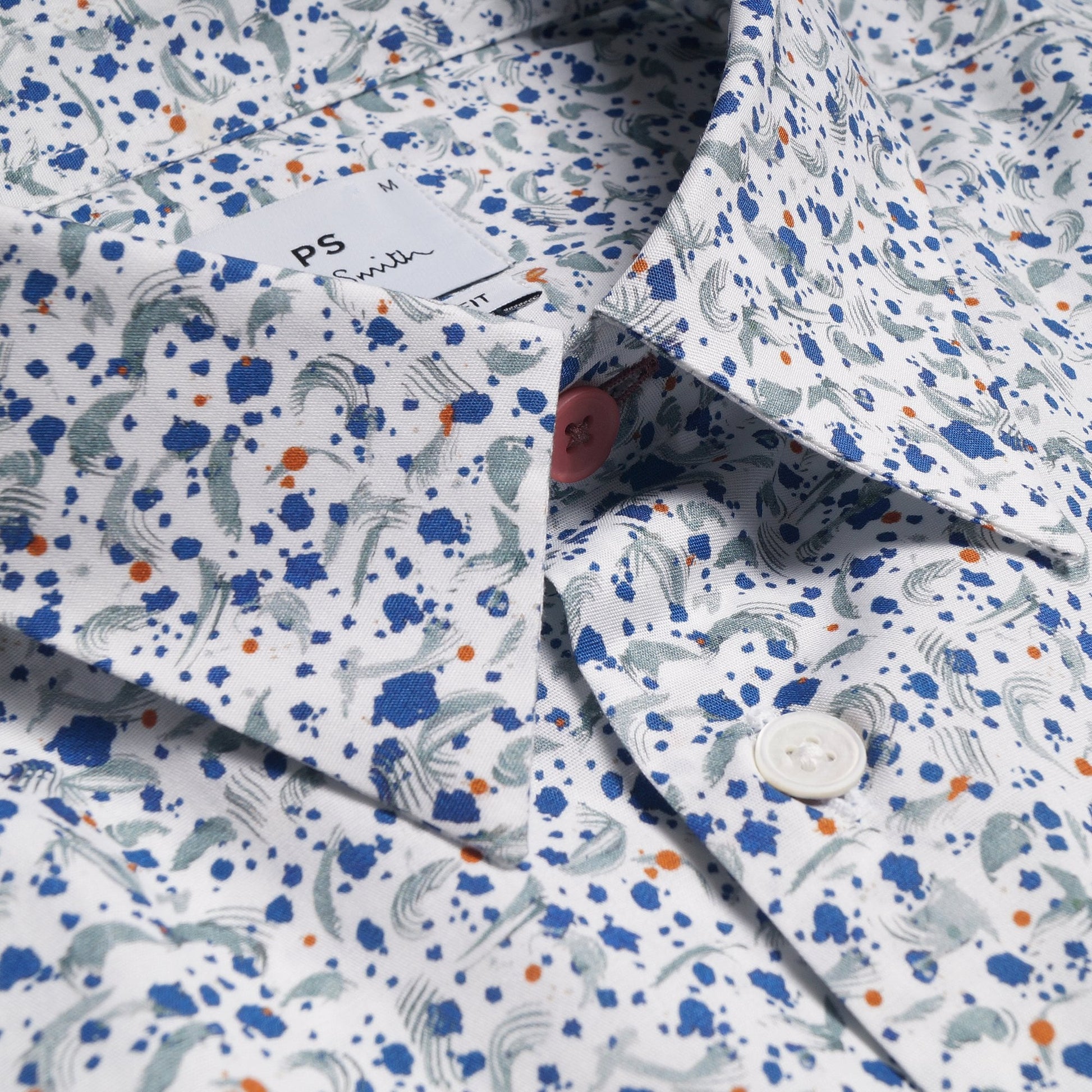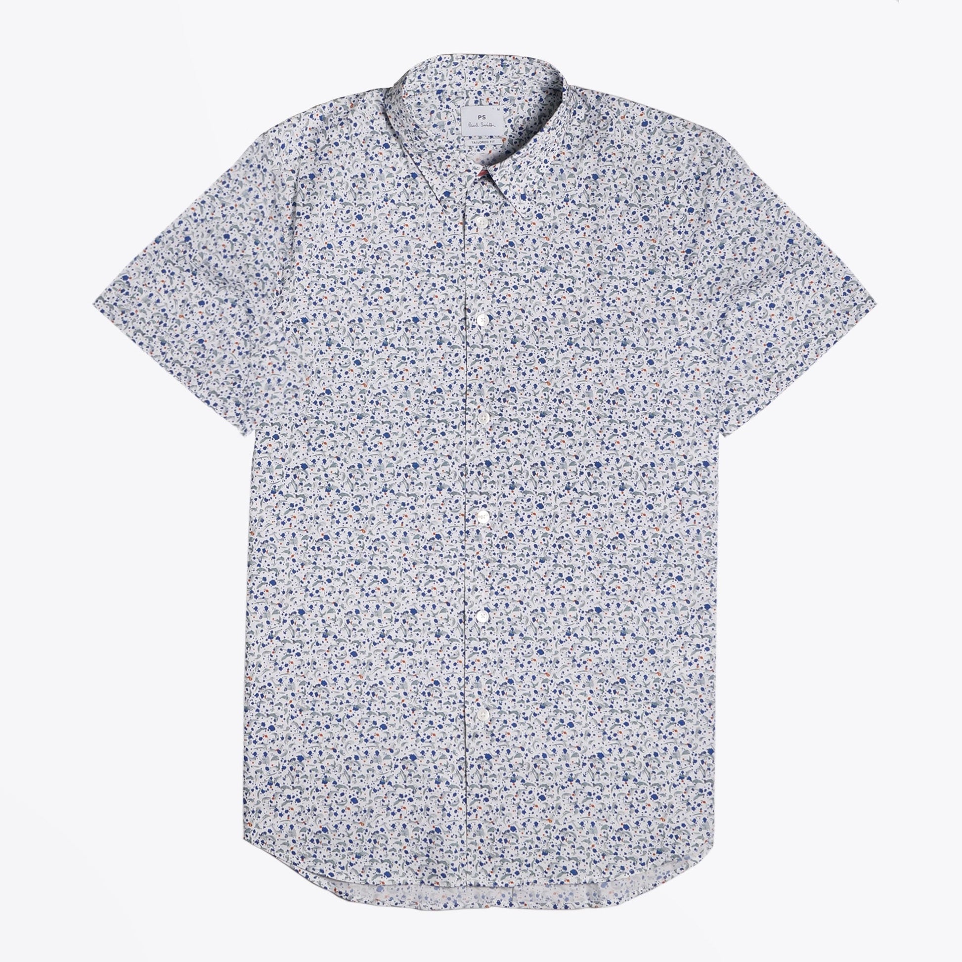 Paul Smith is a distinguished British designer who is renowned for his creative aesthetic, which combines tradition and modernity. This classic short-sleeve contemporary tailored-fit shirt is crafted in a soft cotton with slight stretch and offers a neat silhouette with added comfort. Featuring a soft point collar and button-down front, this shirt is crafted in an all-over mini abstract paint splat print. Other features include pearlescent buttons, curved hemline snd topstitching details. Men’s shirts with a hint of quirk are a Paul Smith staple.