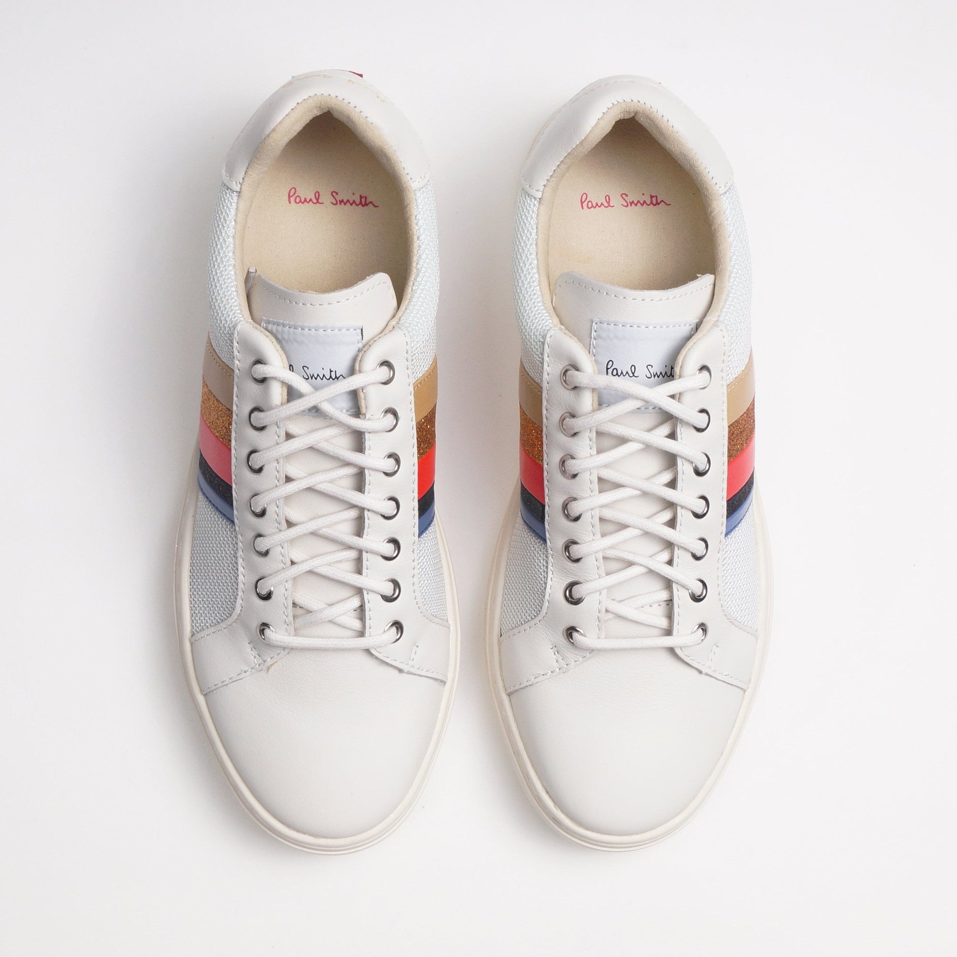 Paul Smith is a distinguished British designer who is renowned for his creative aesthetic, which combines tradition and modernity. Classic with a hint of eclectic is the key element of the company. Made from smooth leather these 'Lapin' trainers feature a multi stripe detail on both sides. The trainers come complete with white rubber cup-soles, soft suede lining and cushioned footbeds.
